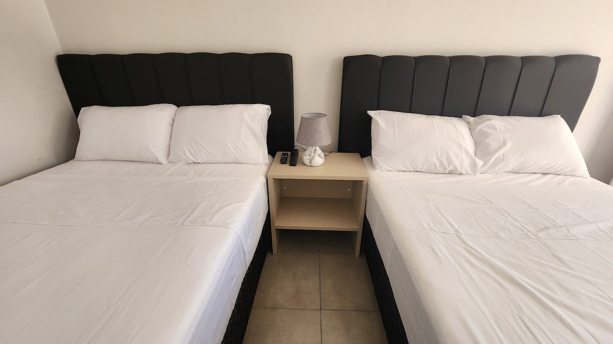 Apartamento moderno, muy cómodo y bien conectado para viajeros, parejas o familias, a minutos del Aeropuerto Internacional. Supermercado 24/7 a 1 cuadra, farmacia, ubicado a pasos del parque Ñu Guasu, el Comité Olímpico Paraguayo, la Conmebol y el CIT. Acceso rápido al Eje Corporativo de Asunción, Shopping del Sol y La Galería. Equipado con aire acondicionado, wifi, mesa de trabajo, TV y cocina. Disfruta de la calidez de este alojamiento tranquilo y muy bien conectado, ideal para tu estadía.