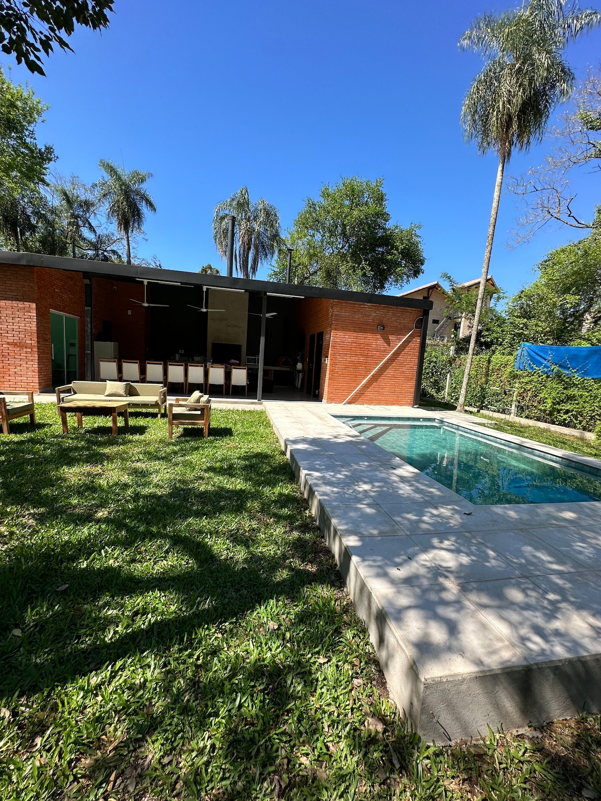 LA CASA DEL RIO. Un Oasis de Paz y Tranquilidad a Orillas del Río. Disfrute de dos casas completamente equipadas para acomodar a grupos de hasta 11 personas: Casa Principal: 3 habitaciones amplias en suite con baño privado y todas las comodidades. Casa de Huéspedes: 2 habitaciones grandes que comparten un baño Quincho con parrilla Piscina Vista panorámica del río y el puente Remanso. Amplio jardín Seguridad máxima A tan solo 30 minutos del centro de Asunción Se prohíben las fiestas.