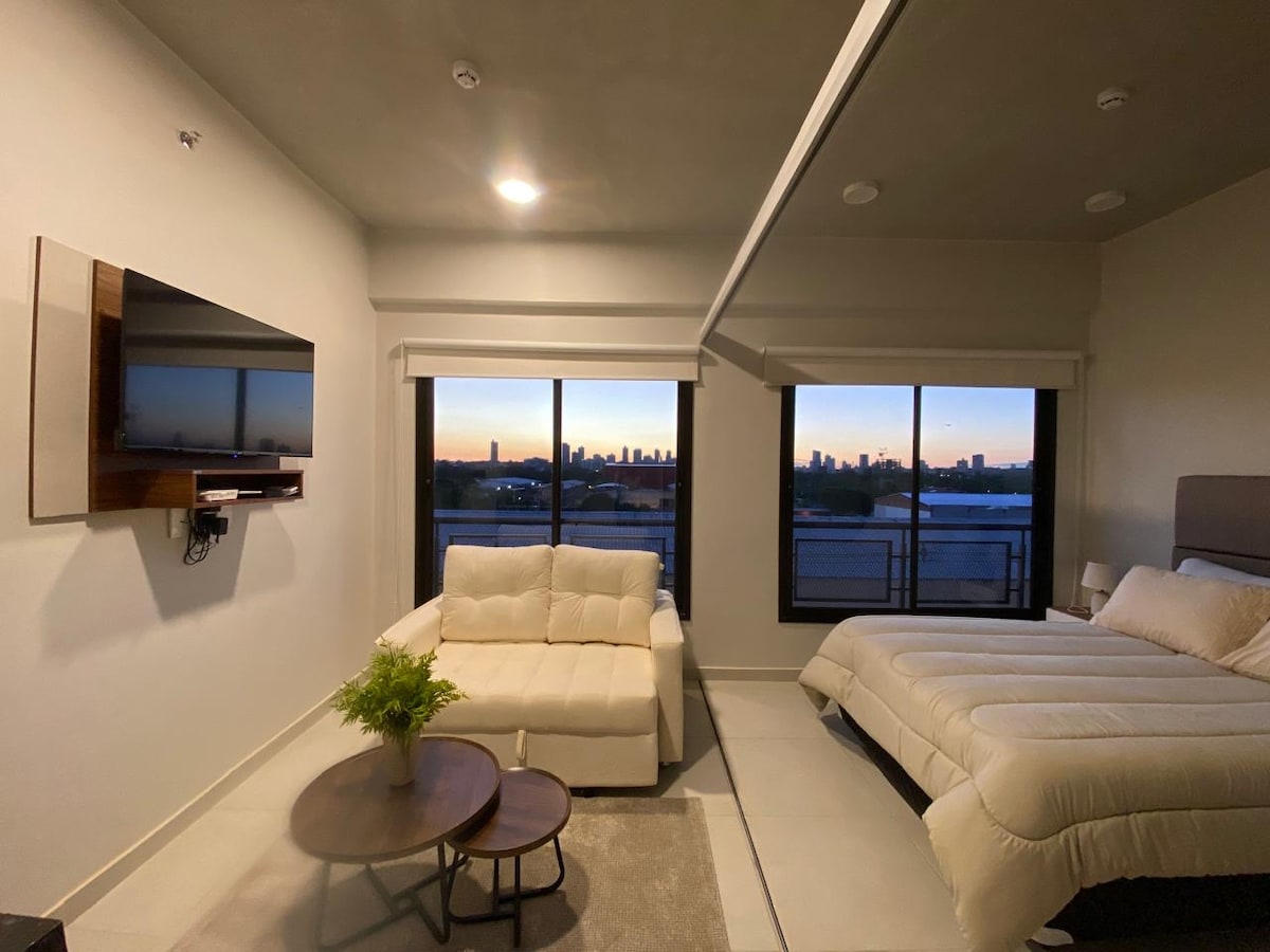 Moderno departamento totalmente amoblado a estrenar, a minutos del aeropuerto Silvio Pettirossi y eje corporativo de Asunción, ideal para viajeros de negocios, escalas o estadias comodas. Check-in 24hs. Con muebles nuevos, Smart TV, WiFi y un cómodo sofá cama (¡y más!). Relájate en la gran piscina o disfruta de las parrillas, la cancha de pádel y cancha multiuso para fútbol y vóley. Ideal para una estadía perfecta. ¡Reserva ahora!