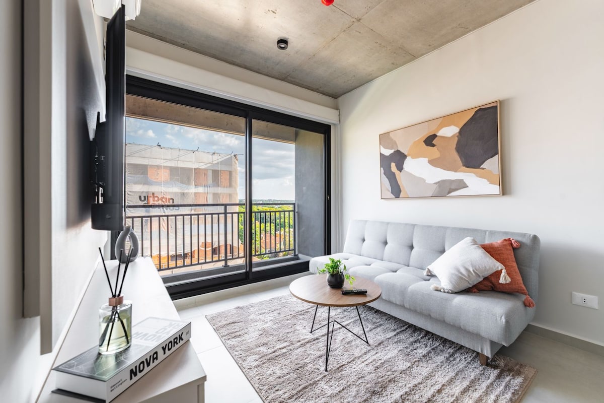 Hermoso y acogedor departamento en un edificio residencial, situado en un barrio muy concurrido con grandes centros comerciales y variedad de restaurantes. Ideal para moverse caminando. Relájate y disfruta de una hermosa piscina en la terraza del edificio, y de un completo gimnasio. El departamento está completamente equipado para 4 personas, tanto para estadías largas como cortas. Tiene 2 habitaciones, un baño completo y un baño social, cocina completa, living comedor, y balcón. Enjoy!
