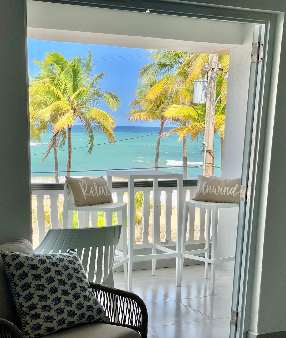 In this apartment you will find comfort, relaxation and a great view, all while feeling the ocean breeze. You will fall asleep listening to the waves come and go. Great location, 45 minutes to the International Airport (SJU) and Old San Juan, 15 minutes to El Yunque, 15 minutes to the ferry of Culebra and Vieques, 5 minutes to Los Kioskos de Luquillo( very popular local food place) and steps to the beach .
