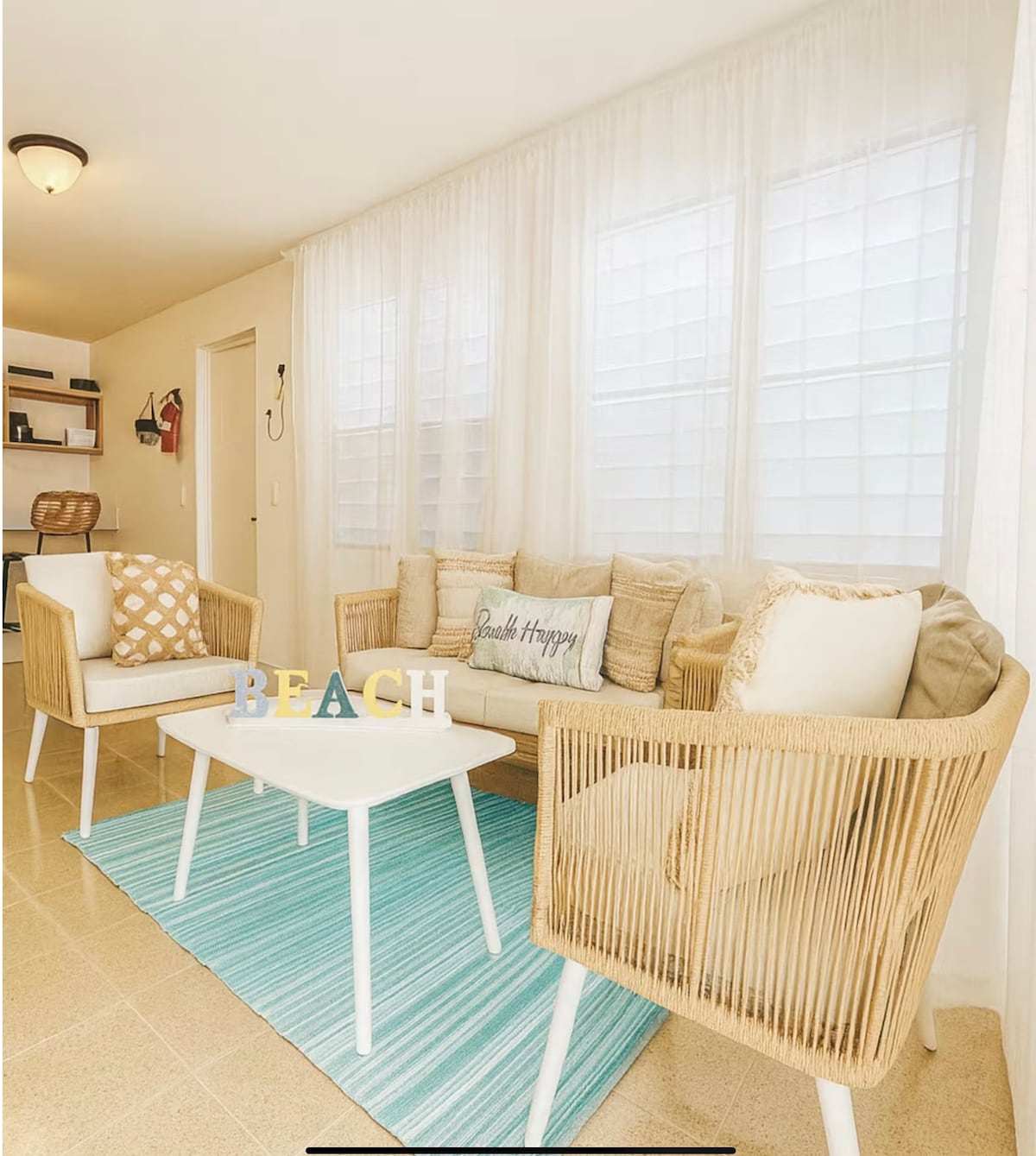 Just steps from the shore, this renovated 2nd-floor condo with a balcony overlooking a quiet courtyard is the perfect family getaway. Hear the ocean waves, enjoy AC in every room, and sleep comfortably on memory foam beds. Fully equipped for a home-like beach vacation. Restaurants, supermarkets, pharmacies, and nightlife are within walking distance. Less than 30 min from El Yunque, Bio Bay, Carabalí, Culebra & Vieques ferry, and only 33 miles from SJU airport