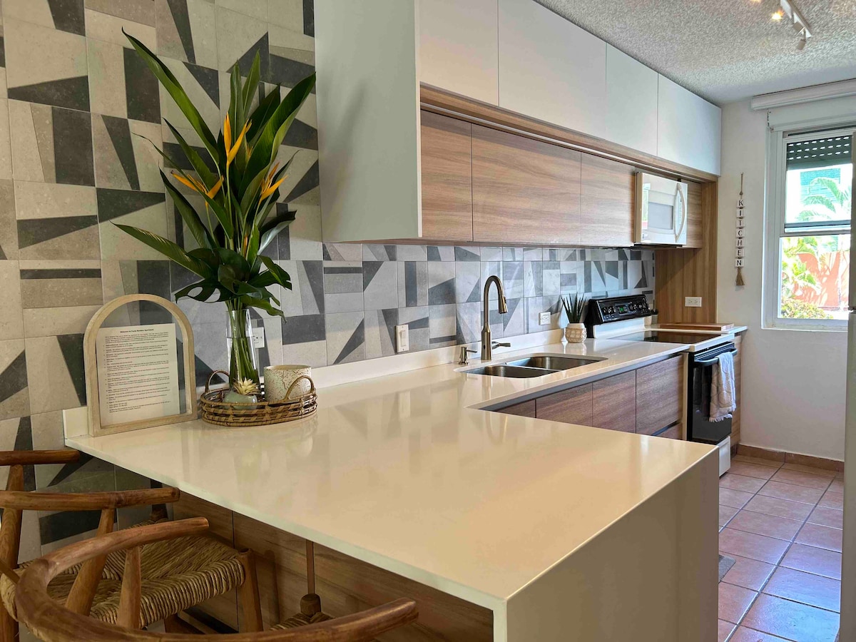 One deserves to be rewarded and this renovated condo has all the amenities within a 3 min walk to the beach! The apartment features upscale furnishings with a fantastic vibe that will make your vacation a feel good experience to remember! Secured entrance w/parking. Ideal strategic location as a base to discover the rest of the island. Potential earlier check-in. Within minutes from El Yunque, kiosks, Fajardo ferry to Spanish Virgin Islands, local restaurants. 30 minutes from (SJU) airport.