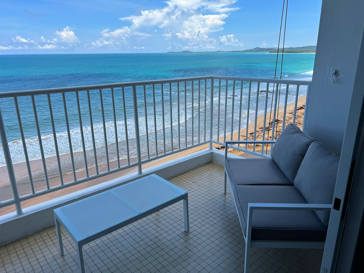Cozy corner apartment located at the 12th floor at the beautiful coastal town of Luquillo. Exclusive bedroom completely overlooking the ocean with a private balcony for a truly oceanfront experience. Breathtaking ocean and city view’s in all areas of the apartment. Fully equipped apartment with private beach access gate. Scenic walkable destination with restaurants, bar’s, live music, coffee shops and more. Centric to tourists destinations like Culebra & Vieques port, Bio Bay and El Yunque.