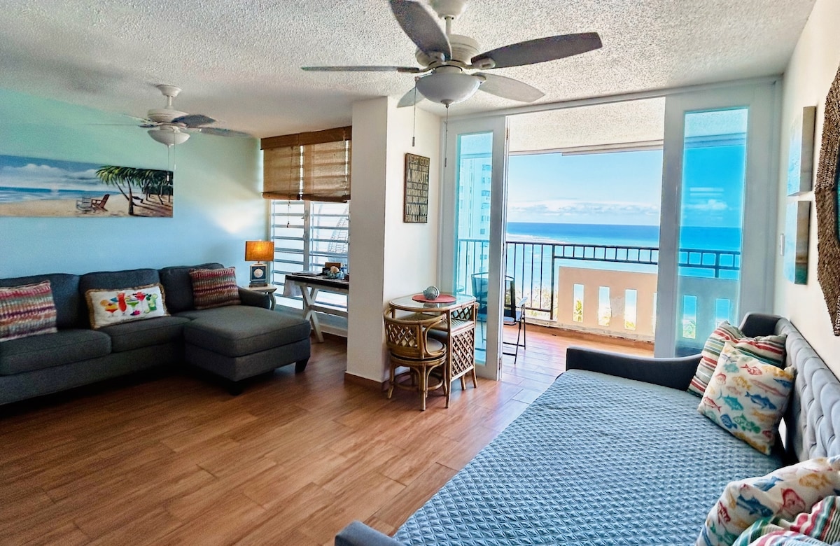 A million Dollar Ocean View! Puerto Rico awaits!!! Treat yourself to an unforgettable retreat: A one bedroom condo with spectacular portrait ocean views; so mesmerizing; such a gem. Fully equipped with washer and dryer,AC; a full kitchen to provide you with all comfort for your stay. We take pride in our cleanliness, spect nothing but perfection; rest in such lush decor to make you feel lost in this oasis suite. Your satisfaction is our goal!