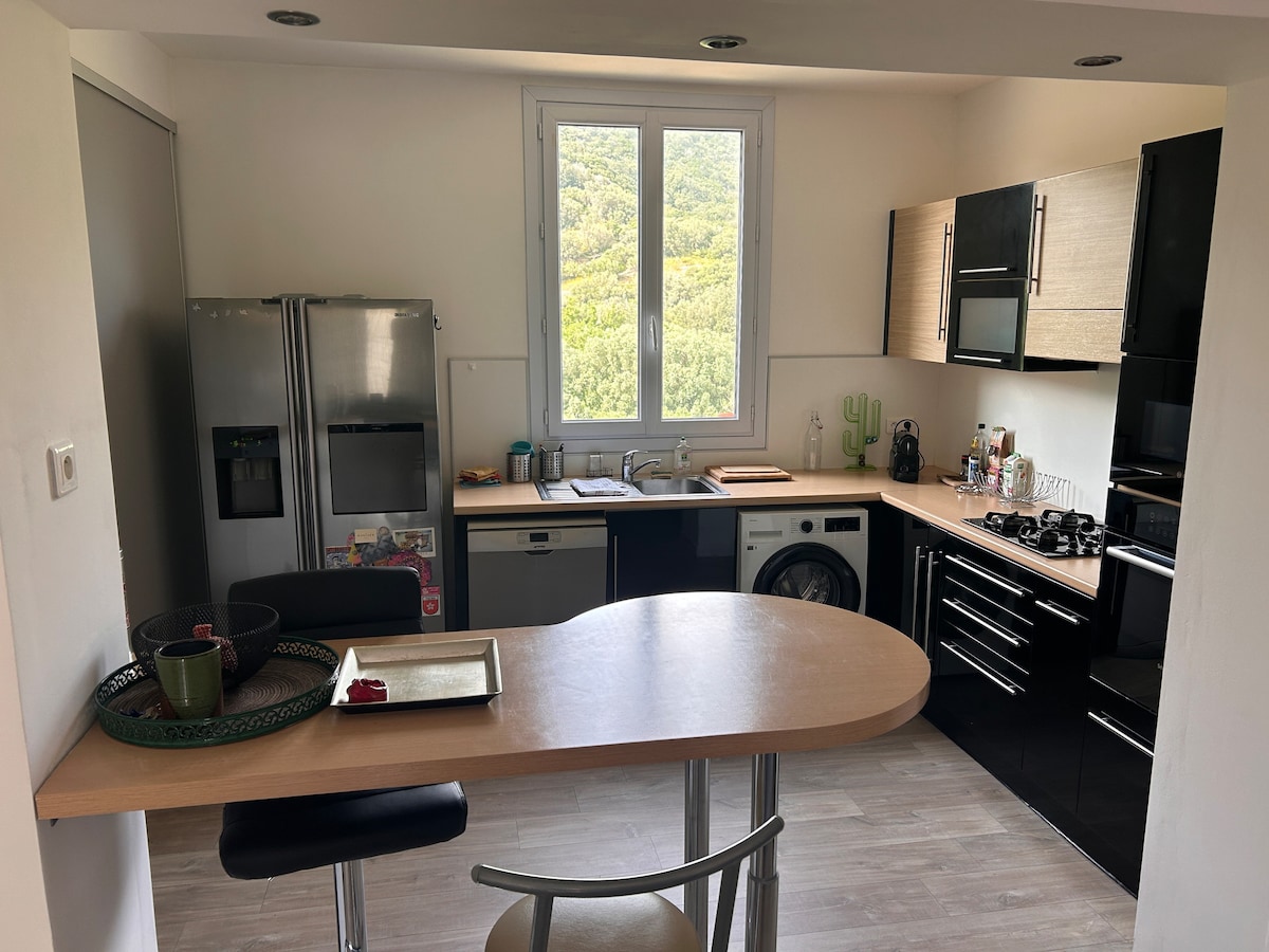chambre de 20 m2 avec salle de bain et kichenette toute equipée : frigo ,plaque cuisson , four/ four micro-ondes , bouilloire , cafetiere ,grille pain , tv , avec vue sur le village et la mer parmi les chataigniers ,mer à 6 km, petite terrasse avec table et chaises pour profiter de l'exterieur le petit dejeuner n'est pas compris , si vous le souhaitez nous pouvons fournir le necessaire à la preparation d'un petit dejeuner et nous proposons également un service de portage de repas sur commande