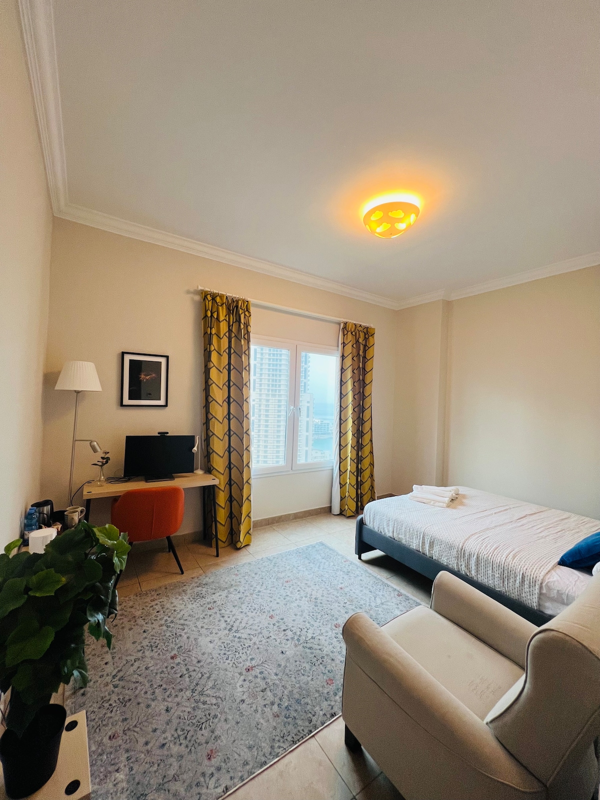 This is an amazing spacious studio with a rare view of the wonderful Marina in the heart of Porto Arabia, The Pearl, Doha, Qatar. You have excellent access to amenities such as a gym, entertainment room, and a free parking space. A supermarket, pharmacy, coffee shops, and restaurants right under your doorstep.