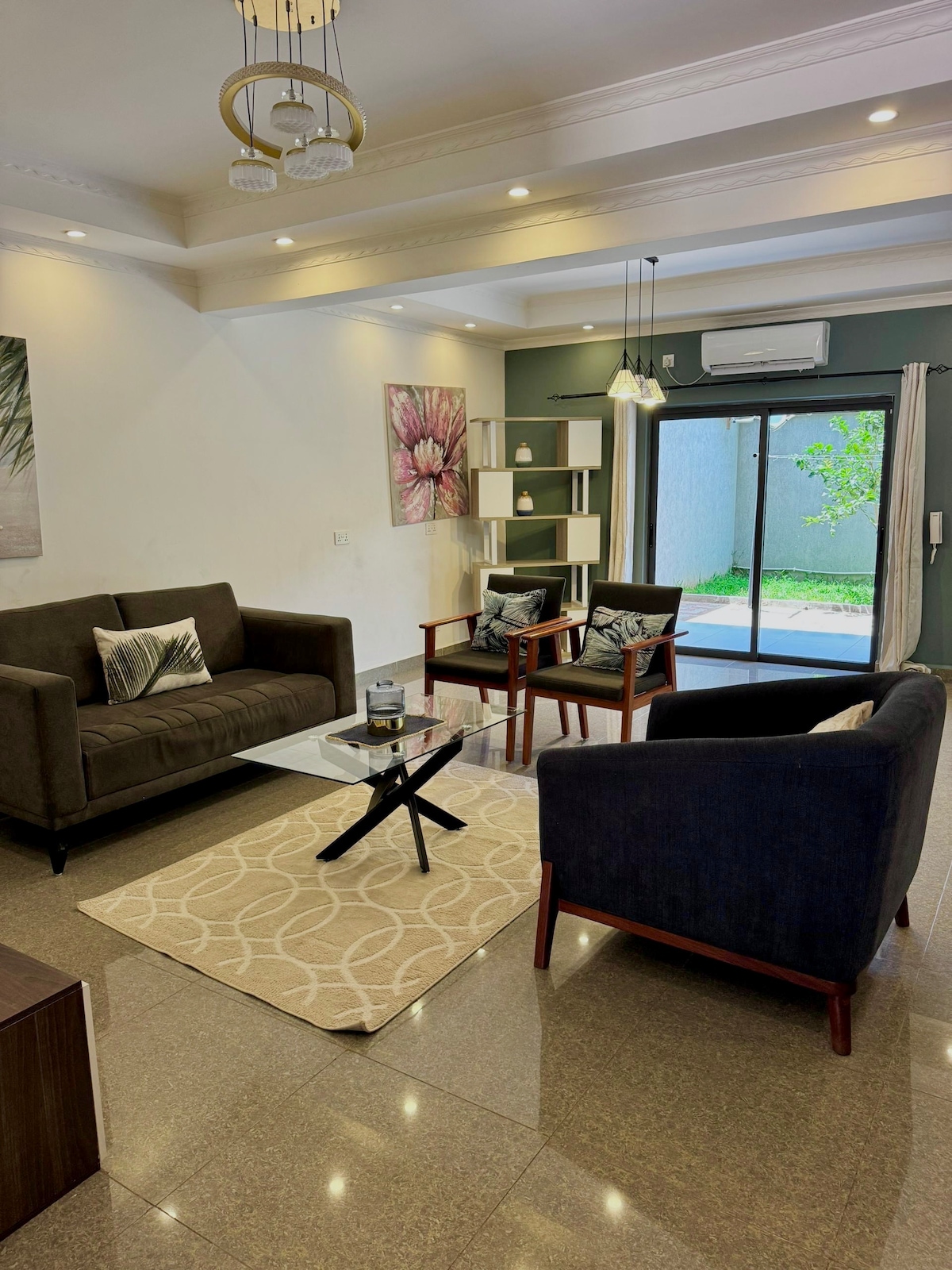 Enjoy a stylish experience at this centrally-located place. Close to amenities such as Twin palm shopping mall, Waterfalls shopping Mall, 10 minutes away from KK International Airport. Features and amenities: Unlimited fibre optics Internet Fully equipped kitchen Washing machine Fridge Iron Microwave Smart TV with Netflix Air conditioning Iron 24/7 CCTV Electric fence Ample Parking Power back up Services included: House keeping provided once a week and full time caretaker