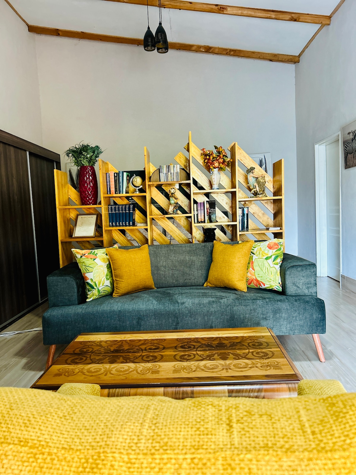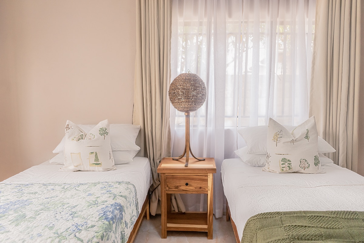 Forget your worries in this spacious and serene space it is a cozy apartment with adequate facilities. Fan for cooling on hot days. It has back up solar and gas for when there is no power. The surrounding yard is well kept and accessible to the geust .