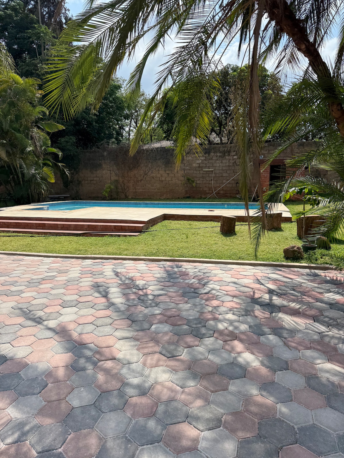 Central, yet quiet, serene, spacious house with mature, lush gardens.Enjoy the beautiful private pool, relax in the gazebo, listen to the birds and watch the stars at night by the fire pit on cool evenings. The house comes with daytime staff who can help cook your meals, do laundry and ensure you have a comfortable stay, 24/7 solar power for all essentials, starlink wifi, high end security systems and its own private borehole. Accessible from Twin Palm or Great East Road. Close to the airport.