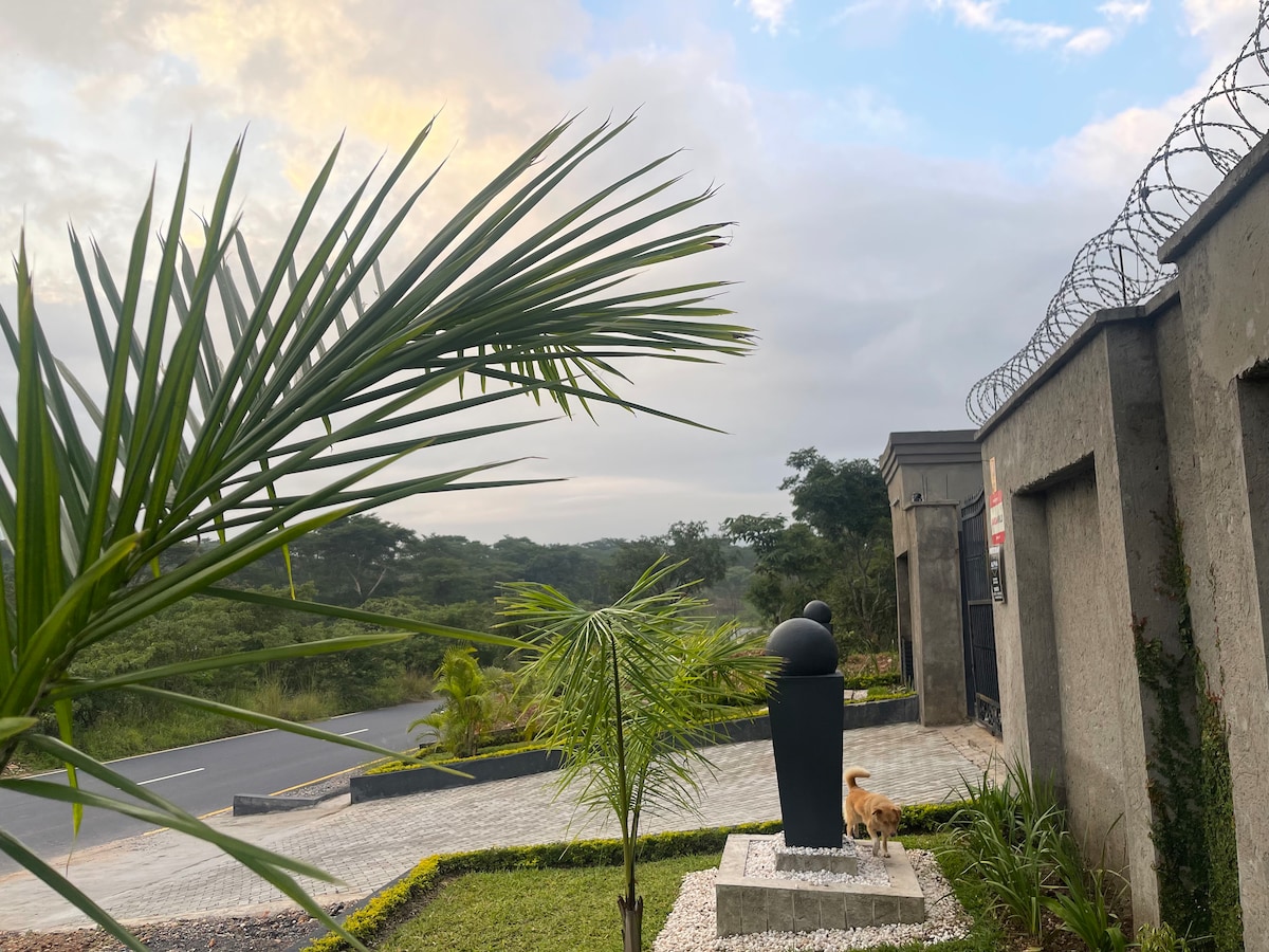 Peaceful and centrally-located two bedroomed guest house, with back up solar power . It is the perfect resting place while you work in Lusaka. We are 5 minutes away from Central and Pinnacle Novare Shopping Mall which feature several restaurants, coffee shops and grocery stores. We are 5 minutes from the US Embassy and 23km from the airport. Zambia is experiencing power cuts. We have a backup system that lasts up to 4 hours after sundown and is supported by solar energy during the day.