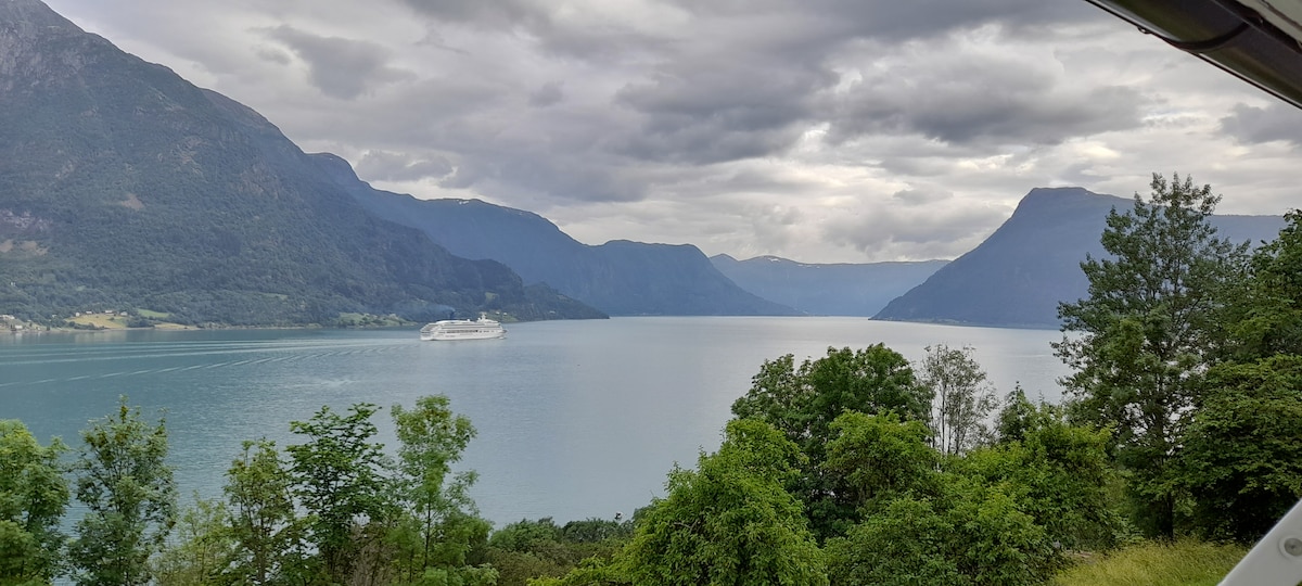 Velholdt hytte i naturskjønne omgivelser. Her kan du nyte rolige feriedager med sol fra morgen til kveld. Direkte utsikt over Lustrafjorden og mektige Feigefossen. 35 minutter med bil til Turtagrø og Jotunheimen med mulighet for topptur og vinteraktiviteter på en av de mange kjente fjellene i nasjonalparken. 45 minutter reisetid til Breheimsenteret og den spektakulære Jostedalsbreen. 40 minutter reisetid til Sogndal sentrum. 10 minutter til badeland og kjøpesenter. Badeplass like ved.