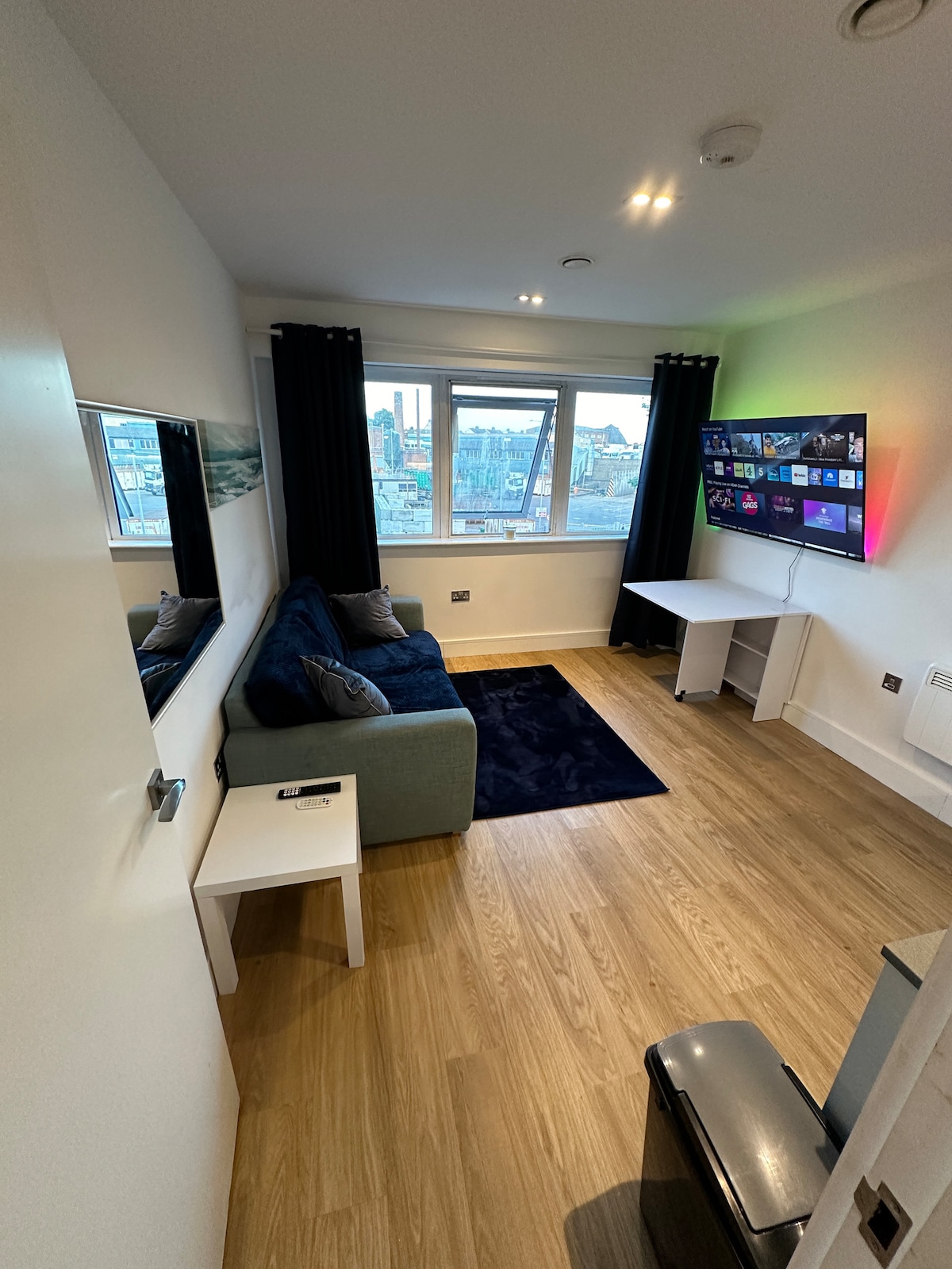 Bright ground floor flat in central Luton, ideal for short or longer stays. Sleeps up to 4 with a double bedroom and a double sofa bed. Features open-plan lounge, smart TV, Wi-Fi, dining area, and fully equipped kitchen. Full bathroom with shower over bath. Parking -restricted street parking Mon -Fri 9-6pm, and free street parking on evenings/weekends, paid options nearby. Walking distance to town centre, train station, shops, and close to Luton Airport transport links.