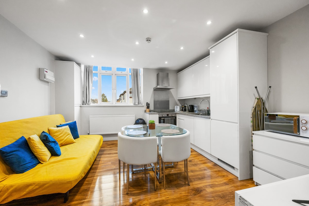 Welcome to our charming first floor (not ground floor, one flight of stairs) apartment located in the heart of Islington, London! Our spacious and modern apartment is perfect for both short and long term stays, for up to 4 guests (1 bedroom with a king-size bed and a double sofa bed), with a fully equipped kitchen, a bright and airy living room. Great for WFH! The apartment is conveniently located within walking distance of Upper Street, Union Chapel, Emirates stadium and Camden Passage.