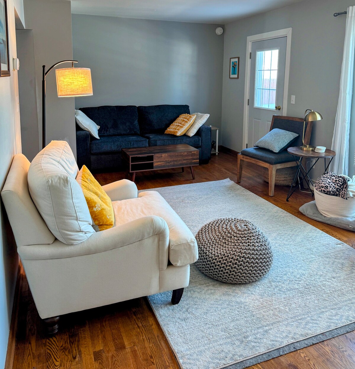 Nestle into a cozy flat perched above a rare books and vinyl shop. Enjoy a morning cup of coffee as you watch boats depart from the historic waterfront. Leave the car behind and wander historic streets discovering quaint shops and good eats. Venture a little further and find the start to the 300 acre Big Ravine Preserve trails. End the day at Washington Avenue Beach watching the sun set over the islands. This flat welcomes you in and provides easy access to all the charms Bayfield offers!