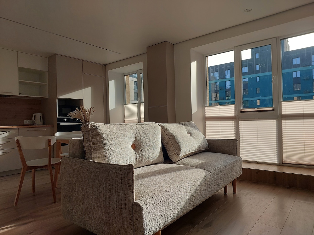 Чудова нова квартира-студіо з авторським дизайнерським ремонтом. Насолодіться стильною атмосферою цього помешкання в центрі міста.