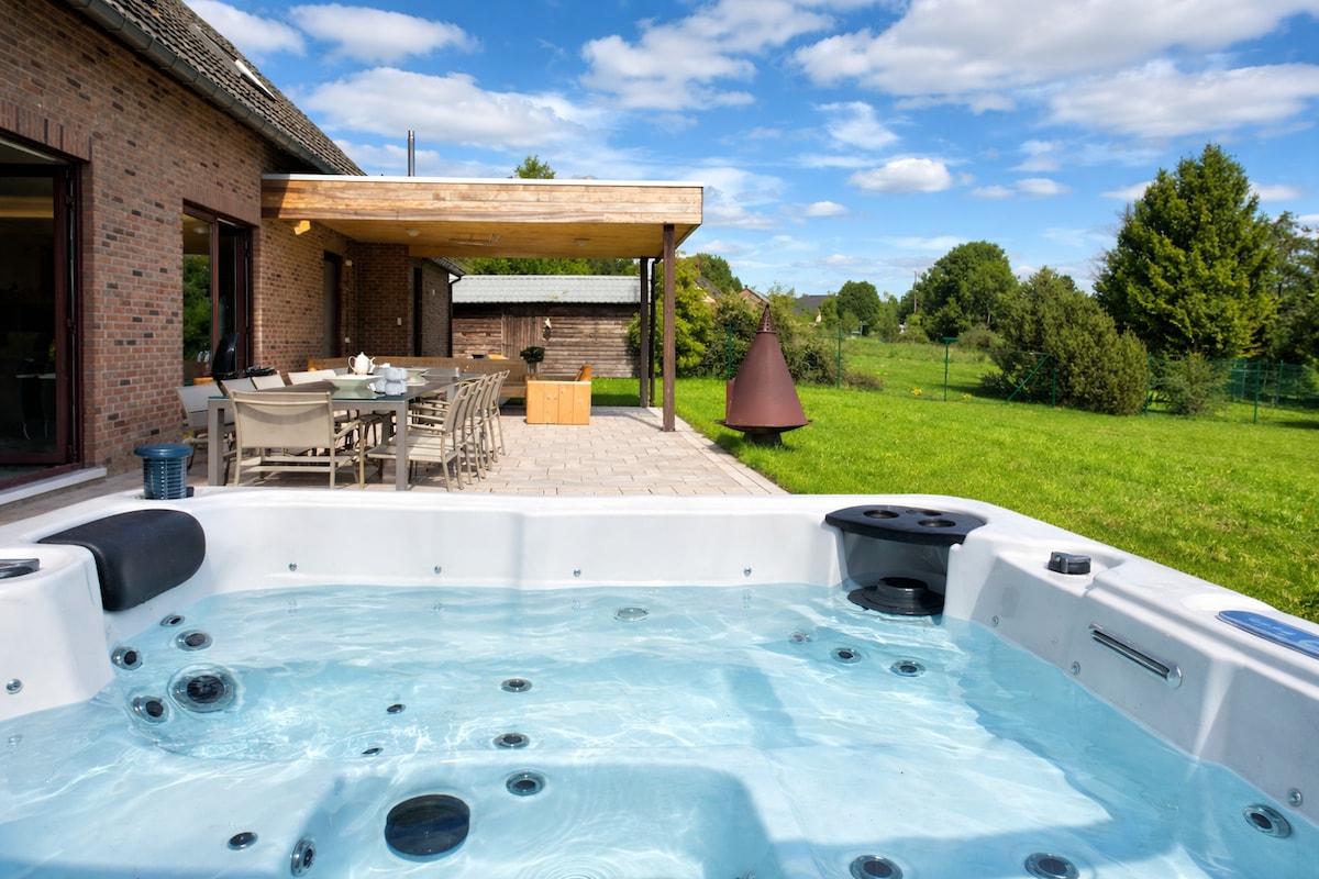 Kick back and relax in this calm, stylish and spacious gîte. Enjoy the sunbathed terrace, the new jacuzzi in the landscaped garden setting, or just lie back on the sunbeds and enjoy the peaceful environment. Have an evening drink, a BBQ, play darts on the covered terrace, or ping-pong on the outdoor table. NEW 2023 Wellis 6 seater jacuzzi with built-in speakers, cool multi-coloured LED lights inside and out, and multiple jet settings! NEW 2025 Air conditioning in each bedroom.