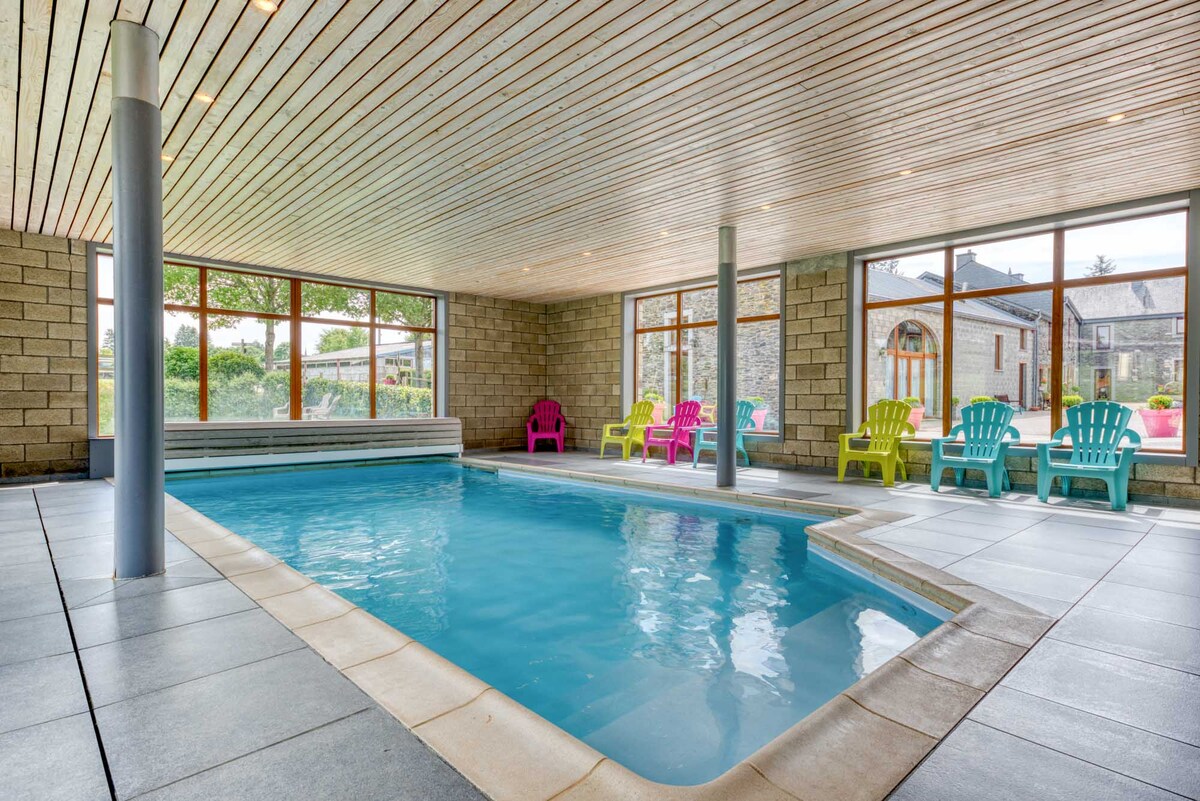 Le logement la Douve est une Maison très authentique et cozy avec terasse en bord du ruisseau des anciennes douves. Située dans les vallées de l'Ourthe et du Laval, entre Bastogne et Saint-Hubert, hameau de 5 maisons au milieu des prairies et proche de la forêt. Beaucoup de charme. Superbe cadre verdoyant, piscine intérieure chauffée à 27° toute l'année et sauna.