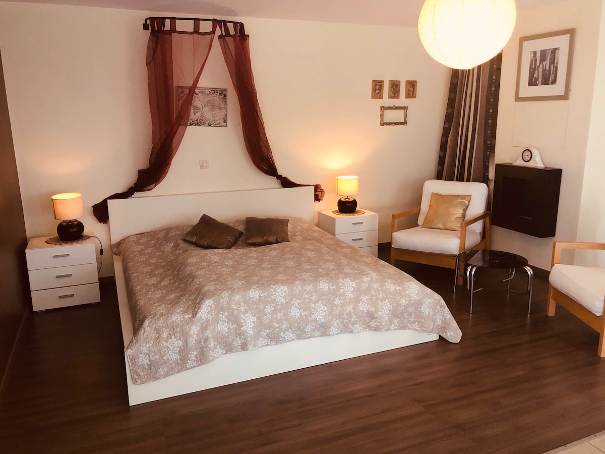 Our studio is a large, fully open space where the bedroom, bathroom, and living area blend together seamlessly. Bright, spacious, and comfortable, it welcomes you in the heart of the Book Village. A relaxing whirlpool bath, a cozy coffee corner, and a pellet stove create a warm atmosphere, perfect for unwinding. Just a two-minute walk away, enjoy the village restaurants and explore walking trails through woods and nature. Baby cot available on request.