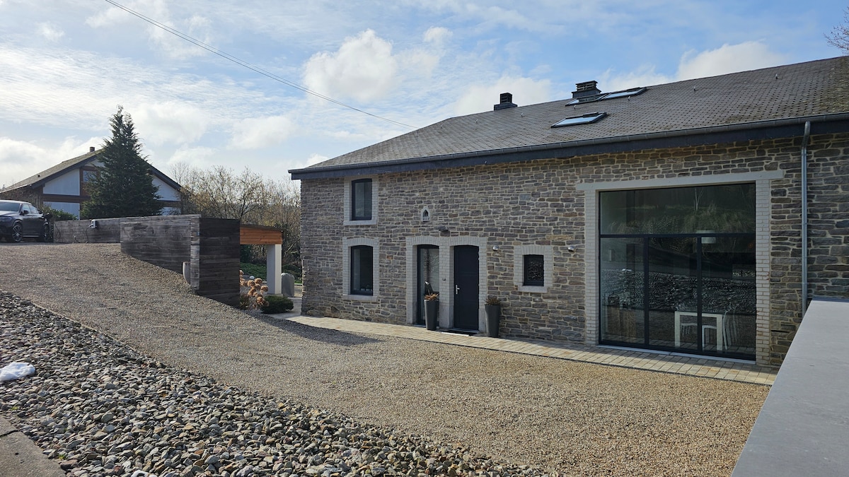 De omheinde woning ligt aan het einde van een rustige straat omringd met natuur. Het is een heuvelachtige omgeving met velden, bossen en weidse uitzichten. Op fiets afstand van het beroemde kleinste stadje Durbuy.