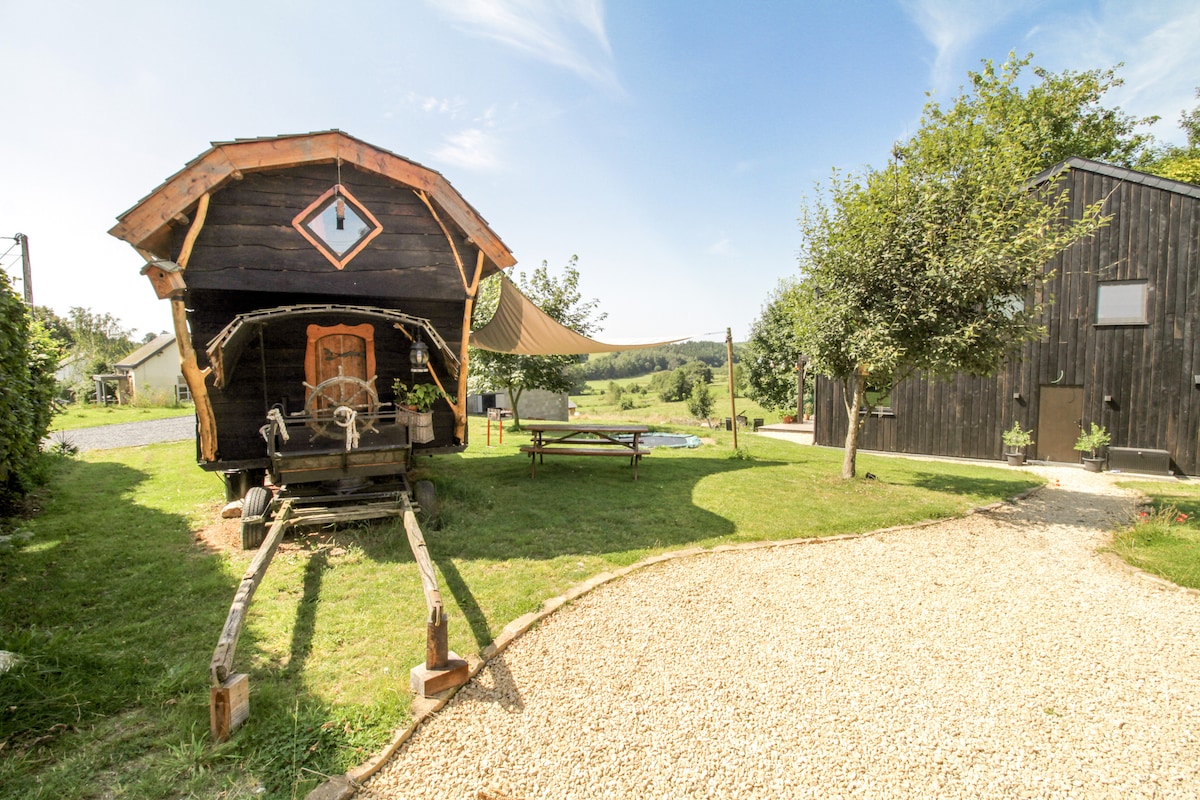 Petite roulotte accueillante chez l'habitant, nichée dans le paisible village de Menugoutte, au cœur de l'Ardenne belge. Elle offre un espace modeste mais chaleureux, un refuge idéal pour une escapade en toute simplicité, à proximité de la campagne et de la forêt environnante. Située à quelques pas d'Herbeumont, Chiny et Neufchâteau, un point de départ idéal pour explorer la région. Elle s'adapte particulièrement bien aux randonneurs en duo ou solo. Draps non compris.
