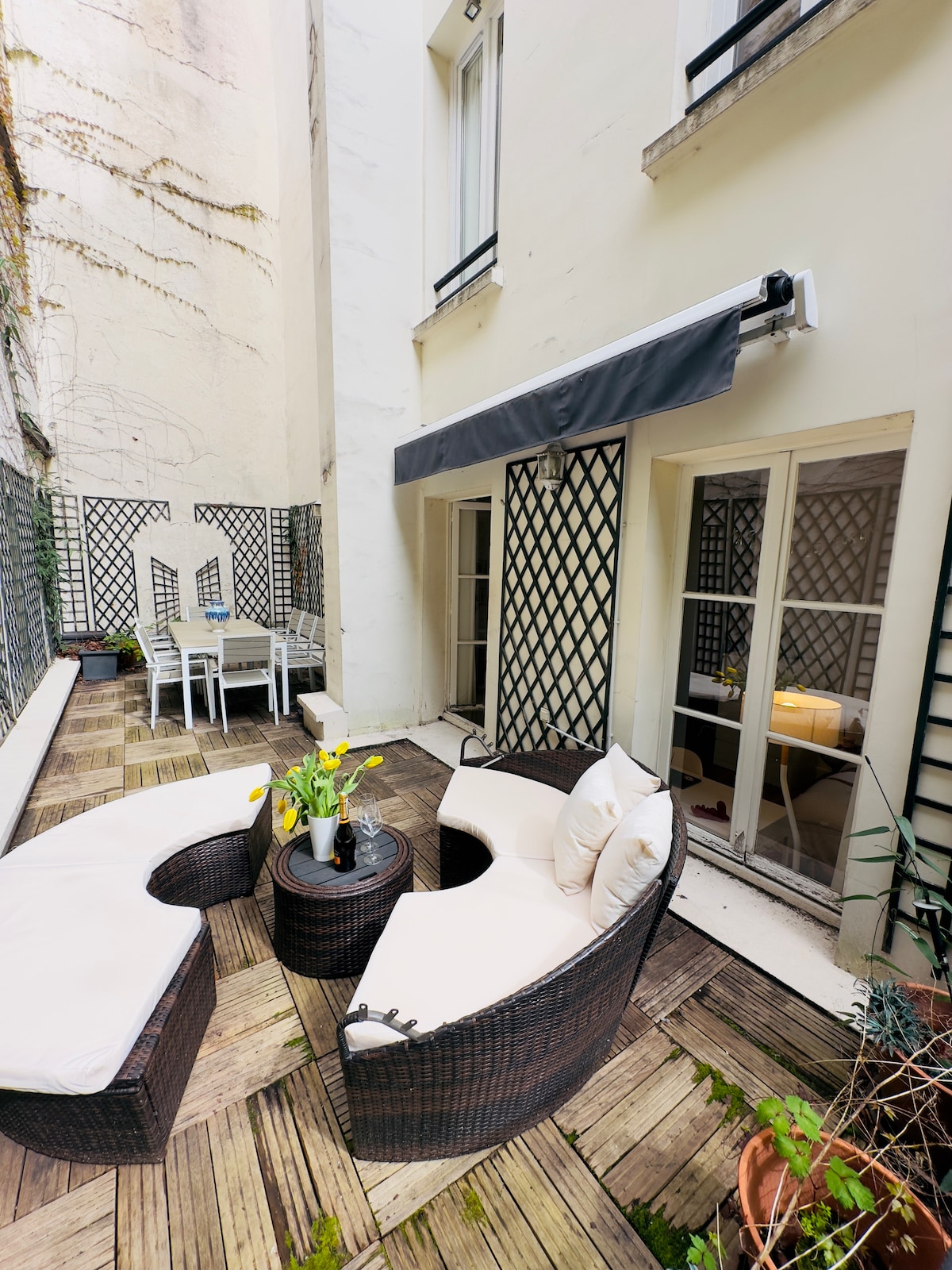Luxurious and intimate, this secluded urban oasis is tucked away on a residential street in bustling Bastille, one of the most authentic and hippiest areas of Paris. Surrounded by some really good restaurants, farmer markets, designer stores and art galleries, it offers all the amenities you would find in a 5-star hotel, including a secluded private outdoor patio with its lush greenery. Famous Place des Vosges and Le Marais are just a short walk away.