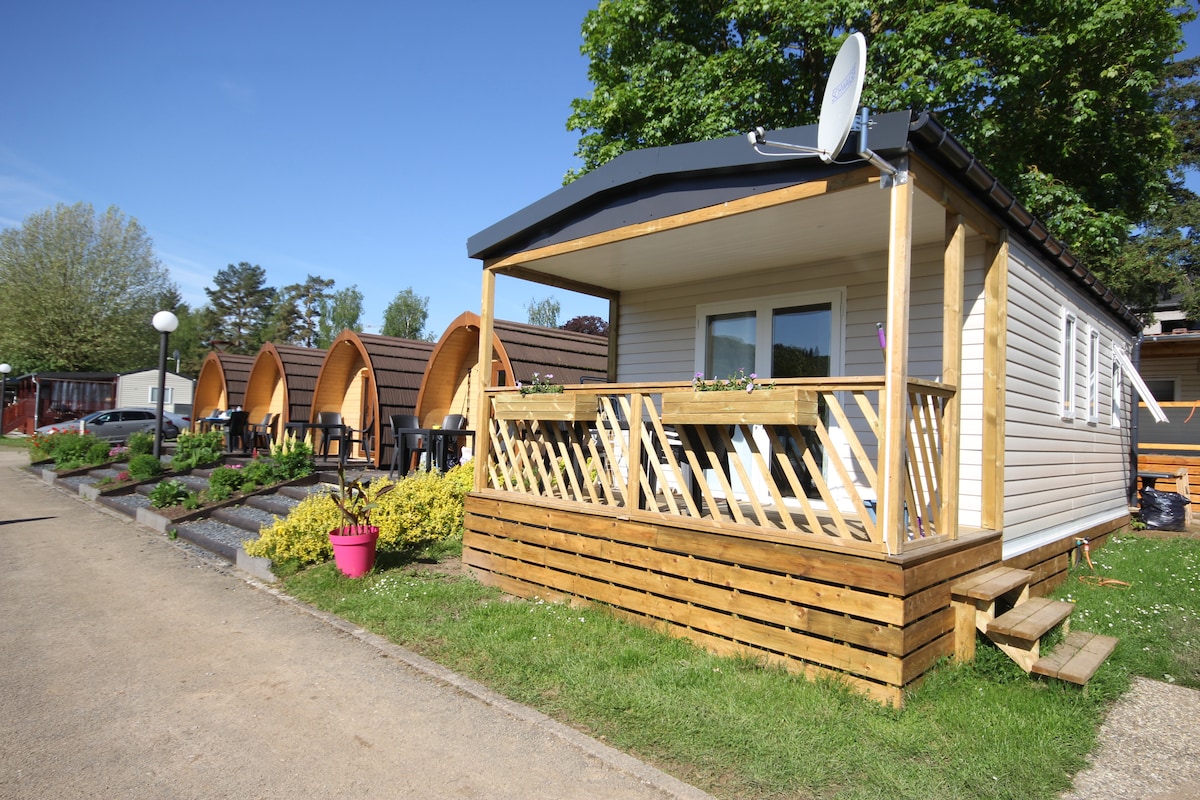 A pod is a 15 m² wooden hut featuring a double bed, sleeping couch, table, chairs, and electricity. Suitable for up to four guests, it’s perfect for families or young adults and a true highlight on the Moselle River. Shaped like a tent, it offers a unique outdoor camping experience. Ideal for nature lovers and fans of mountain biking, hiking, and other activities. Dog Friendly :-) Next to a public pool: 1 free entry for stays of 3+ nights Bed Linen: €10/person Washer & dryer: €2 each