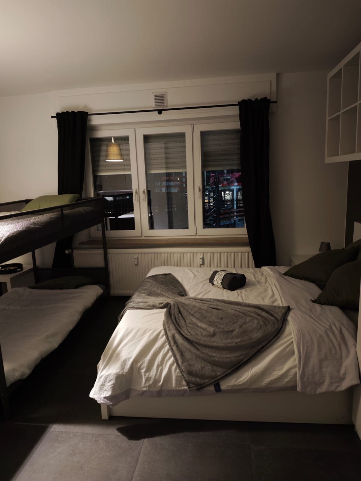 Nosso estúdio de 37m e completo fica a 5 min da Gare Centrale andando e a 2 min do tram gratuito que leva por todo Luxemburgo e até o aeroporto. Totalmente renovado e equipado: cozinha completa, máquina de lavar e secar, banheiro moderno e aconchegante, mesa para 4, TV, 2 poltronas, 1 cama de casal e 1 beliche dupla. Máquina de café, ambiente seguro e central, a 100m de mercado, restaurantes e farmácias. Fornecemos toalhas, travesseiros e cobertas. Aquecimento em 3 pontos para seu conforto.