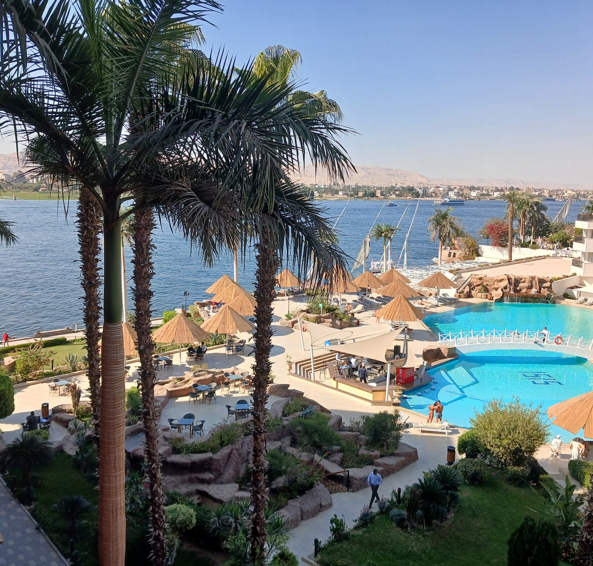 Enjoy the chance to stay at a 5 star hotel for half the normal price with use of all the hotel facilities . Extensive views of both the pools & gardens, stunning views of the Nile and across to the West Bank day & night. Our tourist advisor will help with queeries. Fabulous sunsets on the terrace too, chill out with a coffee or cocktail watching the boats pass by. Transport to the suite is included. Check my guide for extras. Reliable WiFi in the room. Bar area, 3 returaunts.