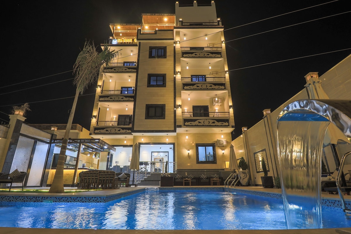 Elegant ground-level suite with a dome design at Malkata House Highlights of Malkata House: - Complimentary breakfast - On-site restaurant offering local and international cuisine - Swimming pool with relaxation area - In-house tour operator for exclusive private tours - Prime location with panoramic views of the Valley of the Queens and desert landscape