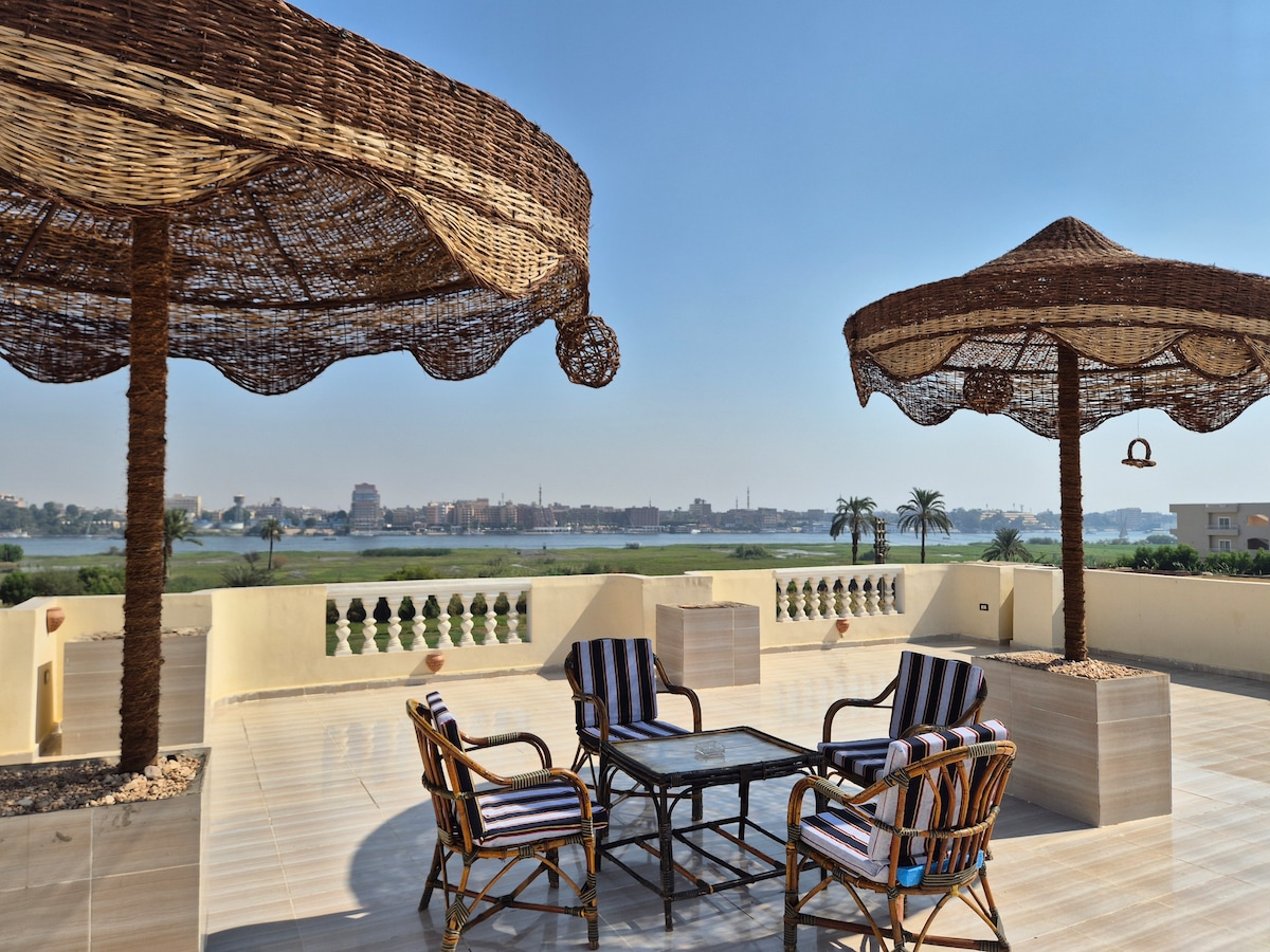 🏰 ROYAL NILE VILLA - YOUR PRIVATE EGYPTIAN SANCTUARY ✨ Luxury Waterfront Living with Spectacular Nile Views 🕹️**UNBEATABLE Location** - 15 minutes drive from Valley of the Kings and Hot Air Balloon 🎈 🚌 **FREE Transportation** - Enjoy our FREE shuttle service directly to West Bank ferry station 🍽️ **EXCEPTIONAL Dining Experience** - Savor delicious meals at our on-site full-service restaurant! 🏩 **24 HOUR Check-In service**