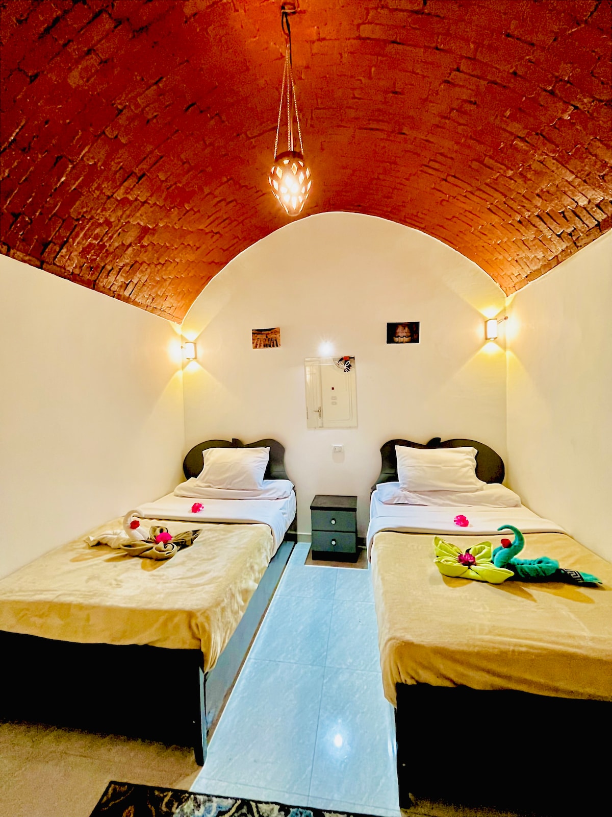 🌿 Écolodge unique à Louxor West Bank — refuge paisible au cœur de la nature, entouré d’arbres et de fleurs, avec piscine et vue sur la montagne thébaine. Maison en terre crue alliant charme traditionnel et confort moderne. Après vos visites des temples, détendez-vous au bord de la piscine et laissez la magie du lieu opérer. Transferts, petits-déjeuners, repas maison et excursions sur demande pour un séjour simple et inoubliable. Un lieu rare où se mêlent culture, nature et sérénité.