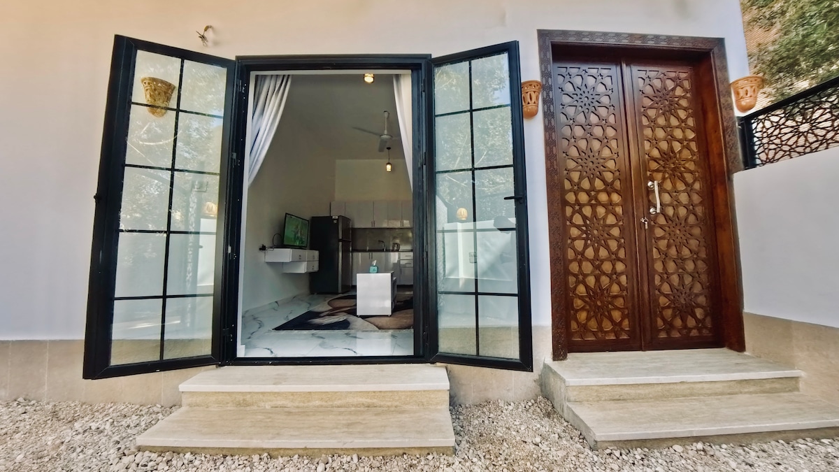 Nefertarie Guest House one bedroom Enjoy a private, fully air-conditioned guesthouse on Luxor's West Bank, featuring a cozy living room, bedroom, private bathroom, and fully equipped kitchen. Relax on your private balcony or rooftop terrace, and take a dip in the shared pool. Just minutes from ancient sites like the Valley of the Kings and Hatshepsut Temple. Elegant, quiet, and perfect for a comfortable stay near history.