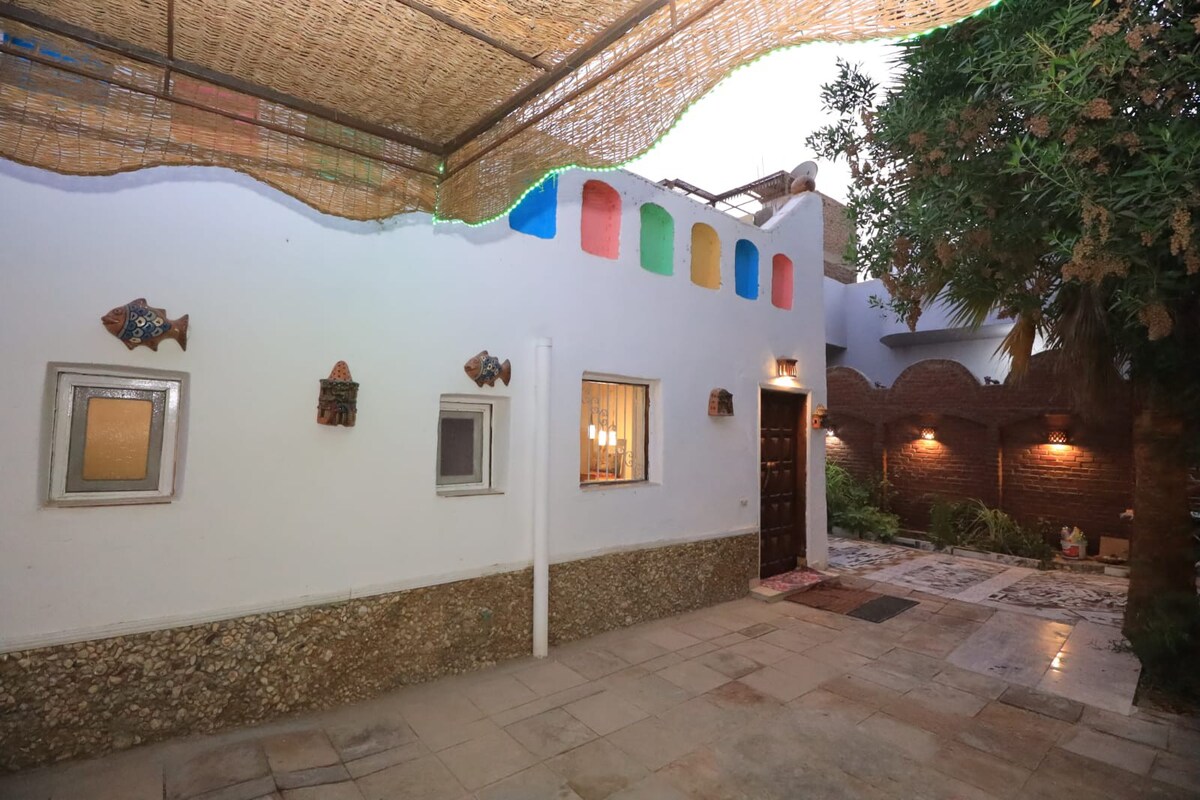 The house is close to the Nile. You can walk for three minutes from the ferry to arrive It is also close to restaurants, cafes, and the city center. You can walk for just five minutes The house overlooks the ancient Nile from all sides, is quiet, and has a roof to sit on The historical attractions on the western coast are all within twenty minutes Just book and you will enjoy a quiet, beautiful and different stay