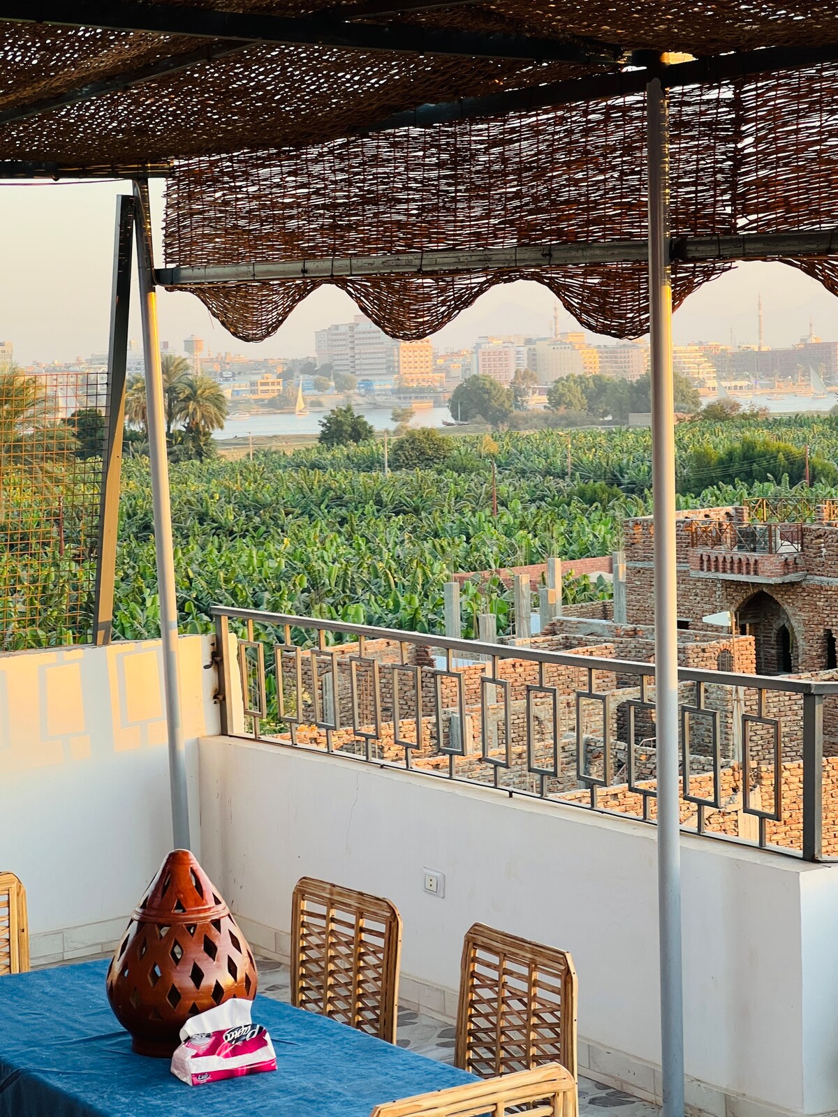 🌿 إقامة هادئة وسط السكان المحليين بين الزرع والجبل لتجربة حياة مصرية أصيلة. يقع المسكن بجوار معبد هابو. 🛒 سوبر ماركت على بُعد دقيقتين مشي، مطاعم على بُعد 5 دقائق، وصيدلية قريبة على بُعد 10 دقائق سيرًا على الأقدام. 🍲 نوفر جميع الوجبات داخل المنزل (نباتي وغير نباتي) حسب الطلب. 🎈 نوفر حجز رحلات البالون، زيارات المعابد، سيارة بسائق، ومرشد ودليل سياحي لتجربة مريحة ومتكاملة.