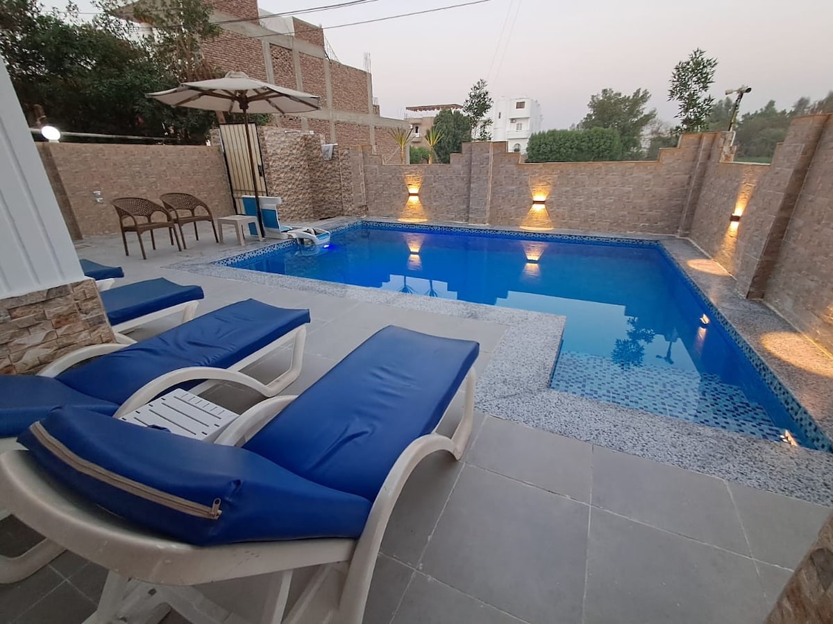 new quiet apartment with swimming pool and garden and perfect location 1 minute walking and u can reach everything like ATM . restaurants . pharmacy. supermarket and also car station to reach all temples 2minutes walking to reach the ferry to East ask us in chat about the 3 day program to visit all temples with private car and tour leader and hot air Ballon and trip in the nile by fluka and and other things