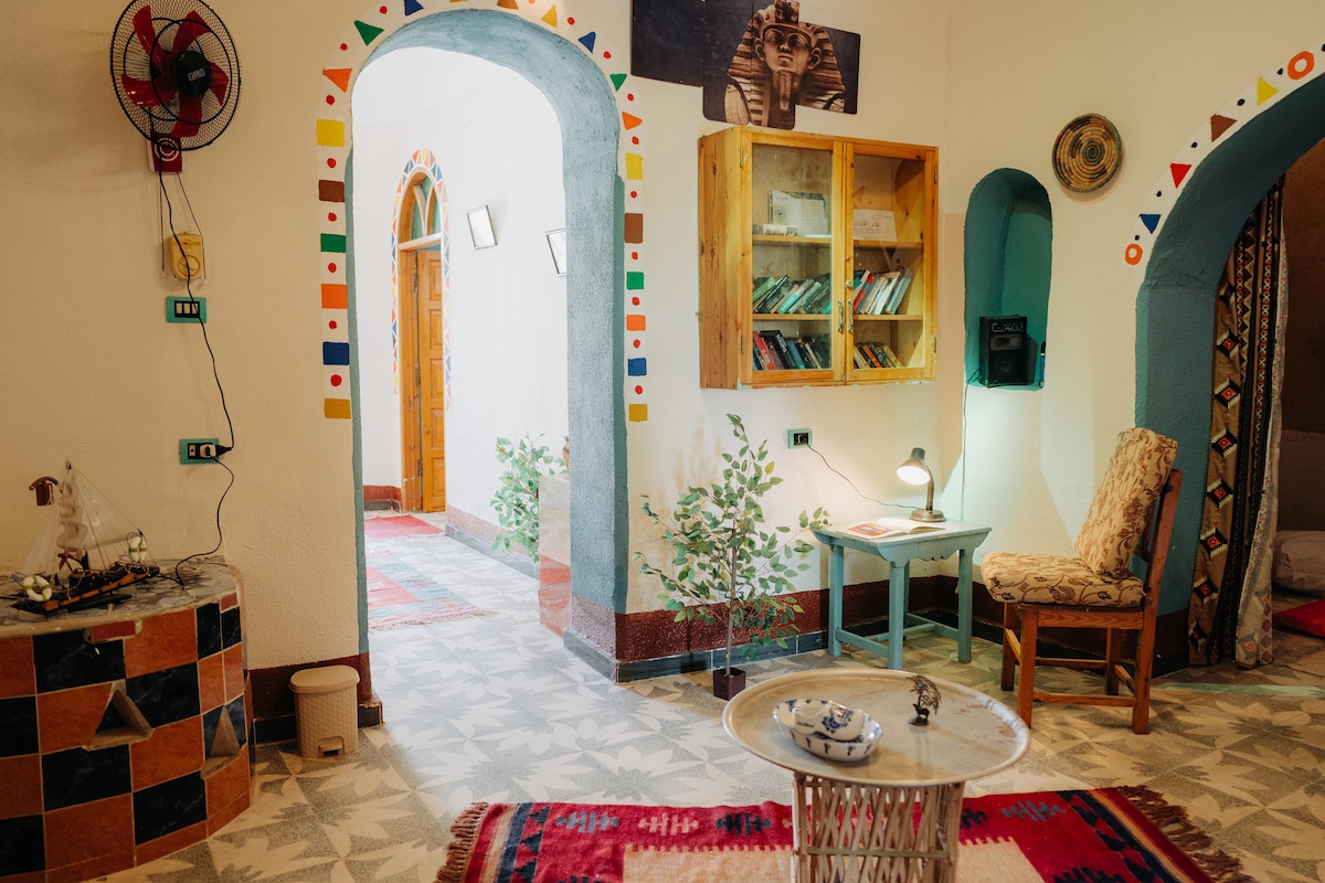 استمتع بإقامة هادئة ومريحة في قلب البر الغربي من الأقصر، حيث التاريخ يحيط بك من كل جانب.هذا المنزل الخاص يوفر كل ما يحتاجه السائح الباحث عن الراحة والأصالة: بها غرفة نوم جميلة ومريحة مجهزة بالكامل.حمام عصري ونظيف يحتوي على كل المستلزمات مطبخ واسع مجهز لتجربة طهي منزلية• غرفة جلوس فسيحة للاسترخاء بعد جولة في المعابد• يبعد دقيقتين فقط مشيًا على الأقدام عن نهر النيل.إطلالة رائعة من سطح المنزل – مثالية لمشاهدة الشروق أو الغروب.قريب من المعابد والمواقع الأثرية الكبرى مثل وادي الملوك والدير البحري