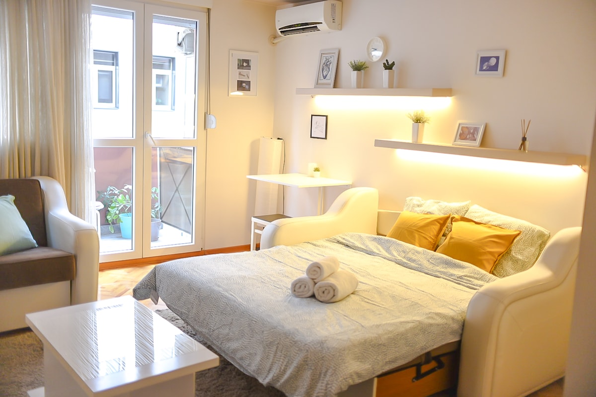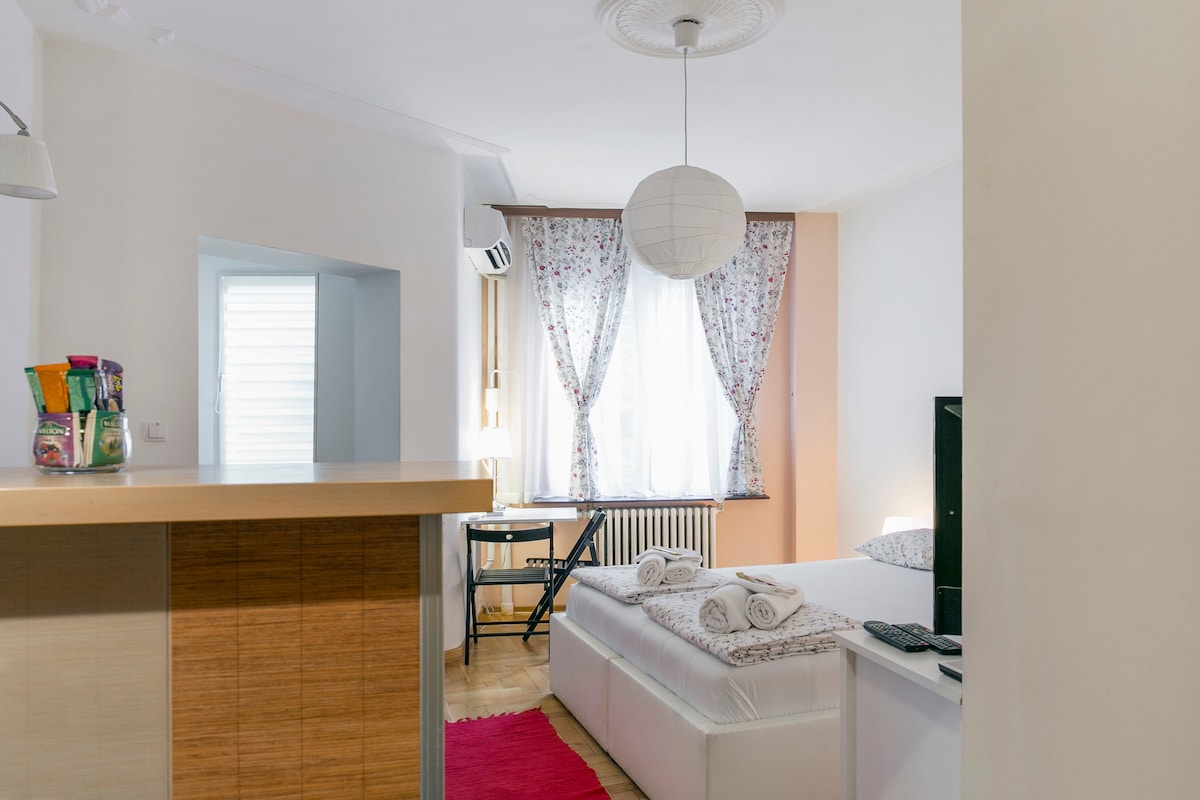 BEST LOCATION!! This is a freshly renovated and cozy apartment situated in a beautiful pedestrian area in the VERY HEART of Belgrade city with a VERY AFFORDABLE PRICE. Allows you to explore the city and major points of interest. Anything you need is just a few steps from apt. We are pet friendly. FREE TRANSPORTATION from the apartment to the AIRPORT for the guests that stay at least 15 nights at our place. In the front of our building you will find FREE TRANSPORT IN THE CITY CENTER