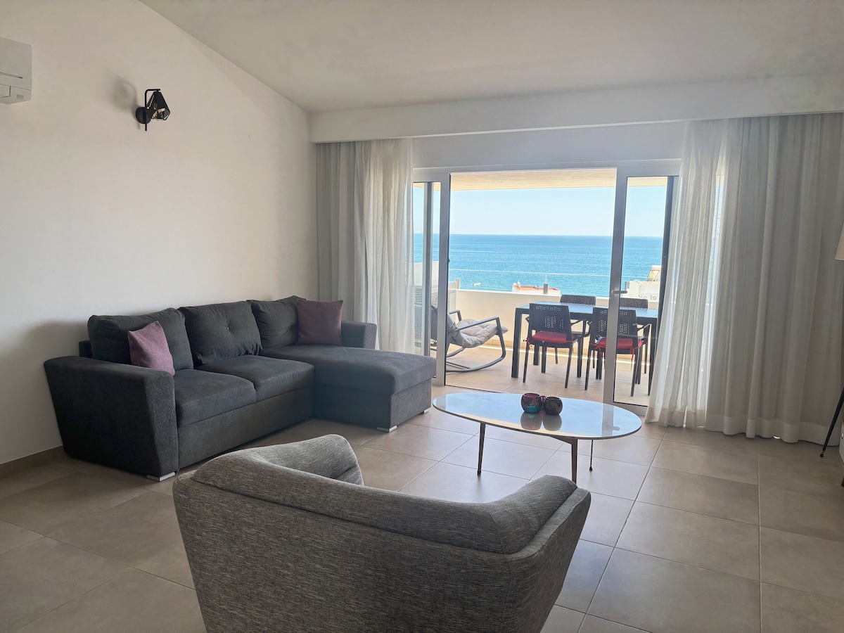 Bright spacious 2 bedroom apartment with beautiful sea views in the heart of Carvoeiro. Beach at 150 meter and shops, restaurants at the same distance. Decorated with modern furniture and linens, this place has it all! Two good size bathrooms for your comfort. Kitchen is fully equipped and all rooms do have air-conditioning. A great balcony to enjoy the view from morning till evening.The large round table let you enjoy breakfast, lunch or dinners outside. Included a Weber BBQ.