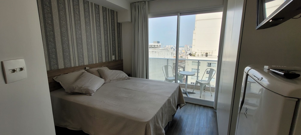 Hospede-se neste funcional apartamento de 30 m² no centro de São Paulo! Com uma cama de casal, uma de solteiro e ar-condicionado, acomoda famílias ou pequenos grupos com conforto. A escolha perfeita para descansar ou aproveitar tudo o que a cidade oferece! 300 m da Rua 25 de Março 600 m do Bolsão de Compras 700 m do Mercado Municipal 450 m da Pinacoteca 1 km da Feirinha da Madrugada no Brás 5 km do Expo Center Norte ✔️ Prédio moderno com portaria 24 h e Wi-Fi rápido