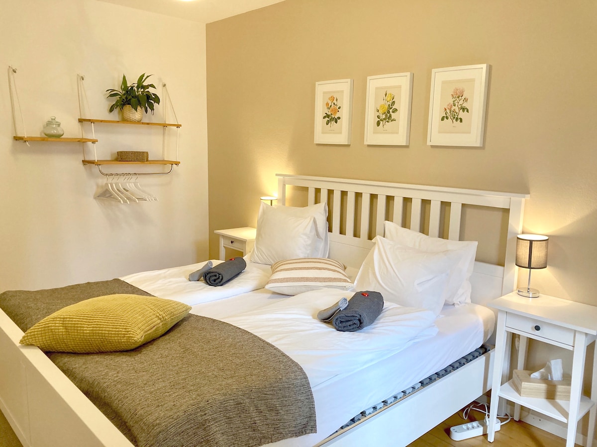 This is a nice, charming + very centrally located apartment. It has 2 rooms (1 bedroom + separate living room with kitchen), spacious bathroom with large bathtub Zürich Airport to the apartment: 1h 15 by train, free Lucerne bus Free car park: only during January 25 (for any new booking as of Dec 26, 2024) car park 3 min walk, ask for availability The apartment is totally for yourselves (not shared with anyone else) It has a small elevator very comfortable king size double bed