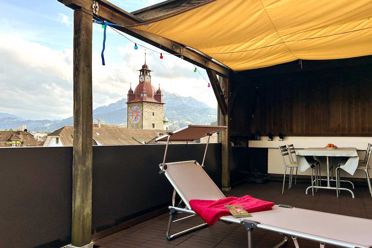 Willkommen in unserer hellen 2-stöckigen Dachwohnung in der Altstadt von Luzern! Mit großer Terrasse, Alpen-Panorama, Seeblick, Outdoor-Schlafen unter Sternenhimmel und antiker Möblierung bietet die Wohnung einen charmanten Rückzugsort. Ausgestattet mit einem Queensize-Bett, 2 Einzelbetten, einem 2-er-Schlafsofa, hellem Wohnraum, moderner Küche, Marmorboden, Regendusche und separatem WC. Geniesse das lebendige Altstadtumfeld mit Restaurants, Bars und Geschäften. Einzigartiges Erlebnis in Luzern!
