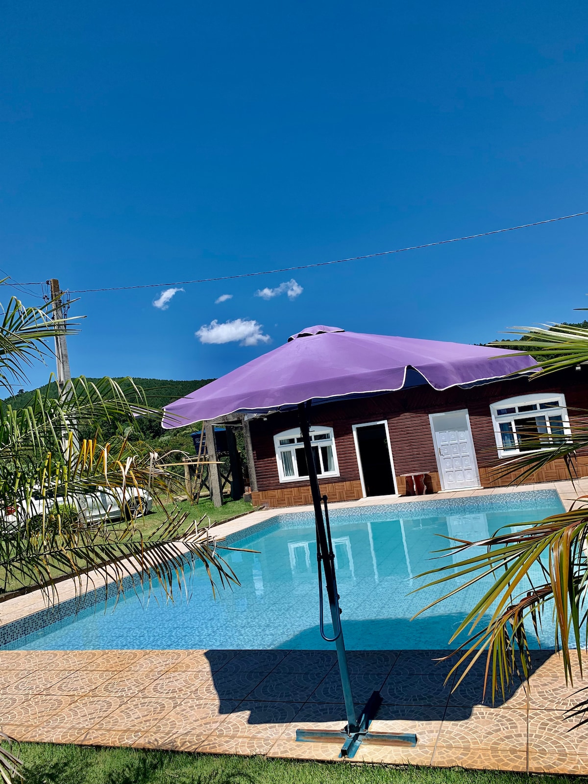 Cabana 100% privativa/ individual. Área externa compartilhada com outra cabana e nossa família ( piscina e jardim). Possui cozinha completa, geladeira com freezer, fogao a gás, micro-ondas, chaleira elétrica, cafeteira italiana, pó de café, acucar e sal sao cortesias. A cozinha possui todos os utensílios. São 2 quartos, o superior com cama King size e TV. O de baixo com cama de casal. Sala e um banheiro. Piscina, jardim externo, horta churrasqueira portátil. Colchões extras.