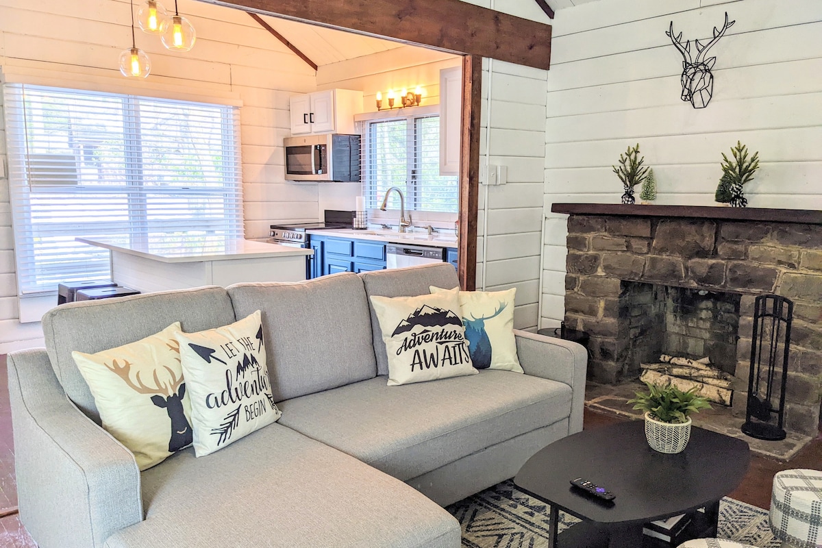 Boulder Cottage! Renovated, traditional cabin nestled in a quiet neighborhood right off the lake, close to ski resort Minutes from- - Split Rock Resorts H2Oooh! Waterpark - Big Boulder & Jack Frost - Pocono Raceway - Hickory Run State Park - Jim Thorpe and Shopping Outlets - Wood-burning fireplace! Firewood can be purchased locally. - Fire Pit - Enclosed patio w nature view! - Fast WiFi + Streaming TV! - Stocked- Fresh linens, towels, cooking supplies! - No pets allowed