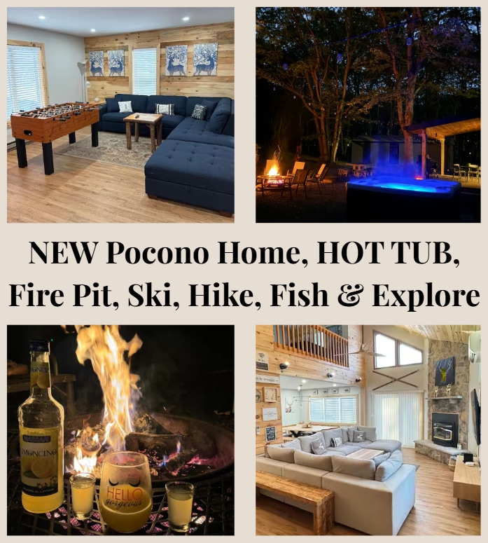 平均评分 5 分(满分 5 分),共 19 条评价全新Pocono房源,热水浴缸,火坑,滑雪和徒步旅行