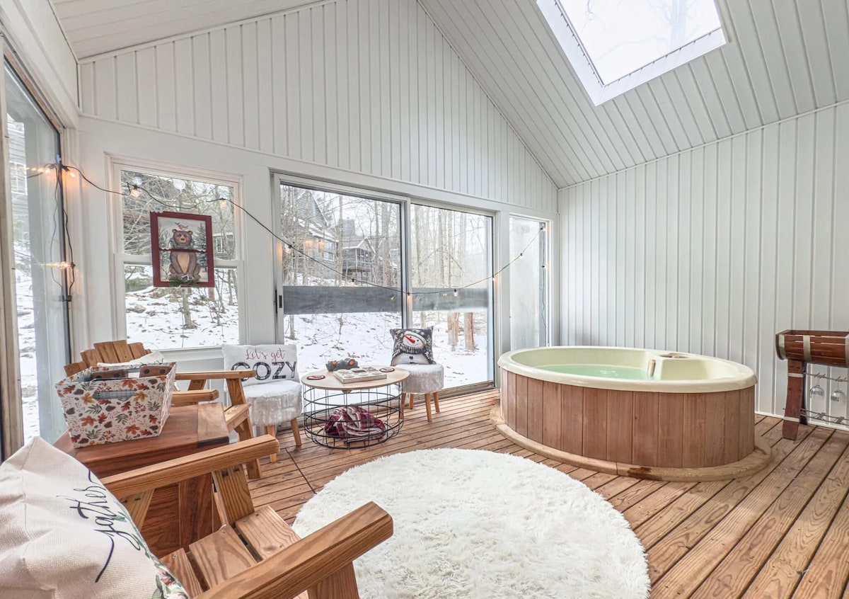 平均评分 5 分(满分 5 分),共 3 条评价宽敞的波科诺小木屋,直达滑雪场,JFBB,带热水浴缸