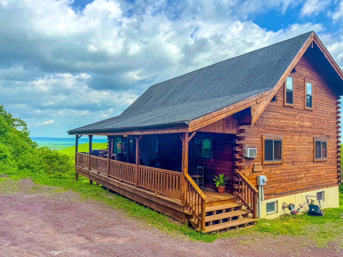 SLEEPS 20+ people. Sierra Vista is an Amish built, REAL log cabin! All Hemlock wood. Million dollar views of the poconos from all floors! 6 bedrooms, 3 full bathrooms. Hot tub, Pool Table, Board Games, NEW Shuffle Board, Smart TVs. Hot tub is operational year round! Tons of State Parks close by. Great area for hiking, waterfalls, fishing, rafting, and seeing the beautiful nature that Pennsylvania has to offer!