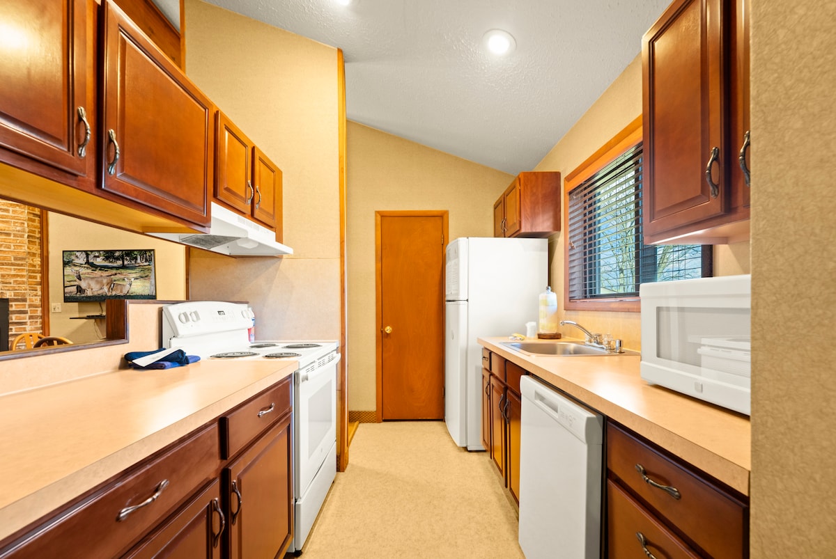 温馨的2床房源,带热水浴缸,靠近哈茂尼湖
