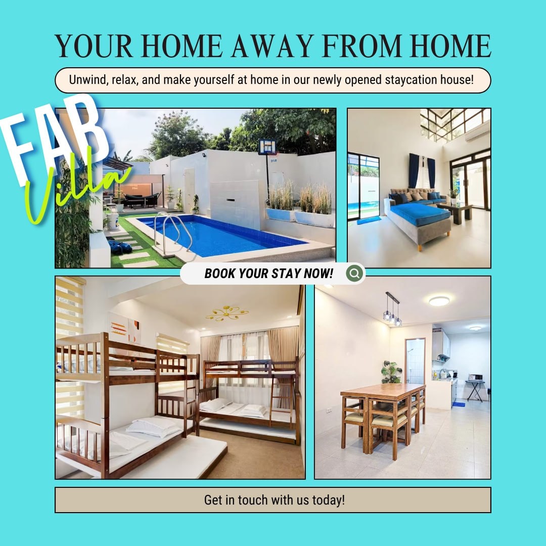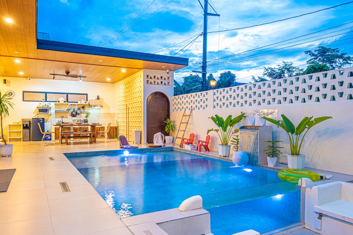 Enjoy The Tropical Villa at Villa Mina, your beautiful escape from the hustle and bustle of the city. Perfect for gatherings & celebrations or if you simply just want to cool off! 🌴 Enjoy: - Private swimming pool (4ft) with water feature - Chic interior design - Outdoor BBQ grill - Air-conditioning - Sofa & Loft-type Beds - Hot showers - Free parking for two cars - Smart TVs with Netflix - Wi-Fi - Kitchen with cooking tools - Karaoke & board games We have more rooms! Inquire to find out 💙