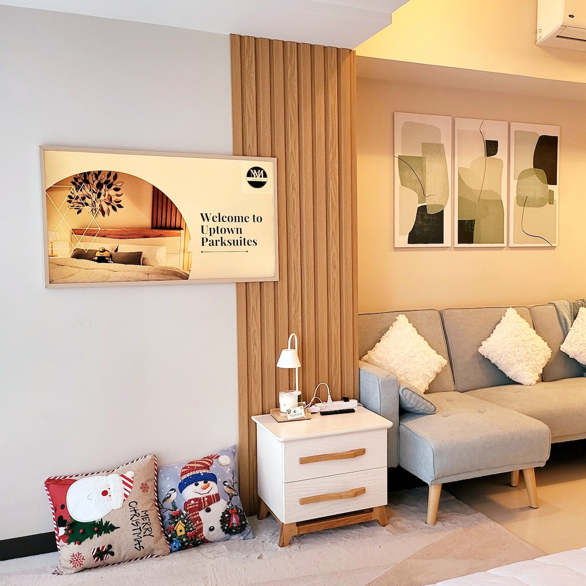 Feel stylish and experience the BGC vibe at this centrally-located place. Get direct access to Uptown Mall. This place is also just across the newly opened Mitsukoshi Mall. Our newly renovated place is bright and airy with a fantastic view of the Uptown Mall fountain show. Take an easy stroll as all major points of interests are just a few mins walk. Feel the energy of Uptown BGC. Shop, dine, or just have a relaxing break at the corner cafe. Come feel the energy of this vibrant community!